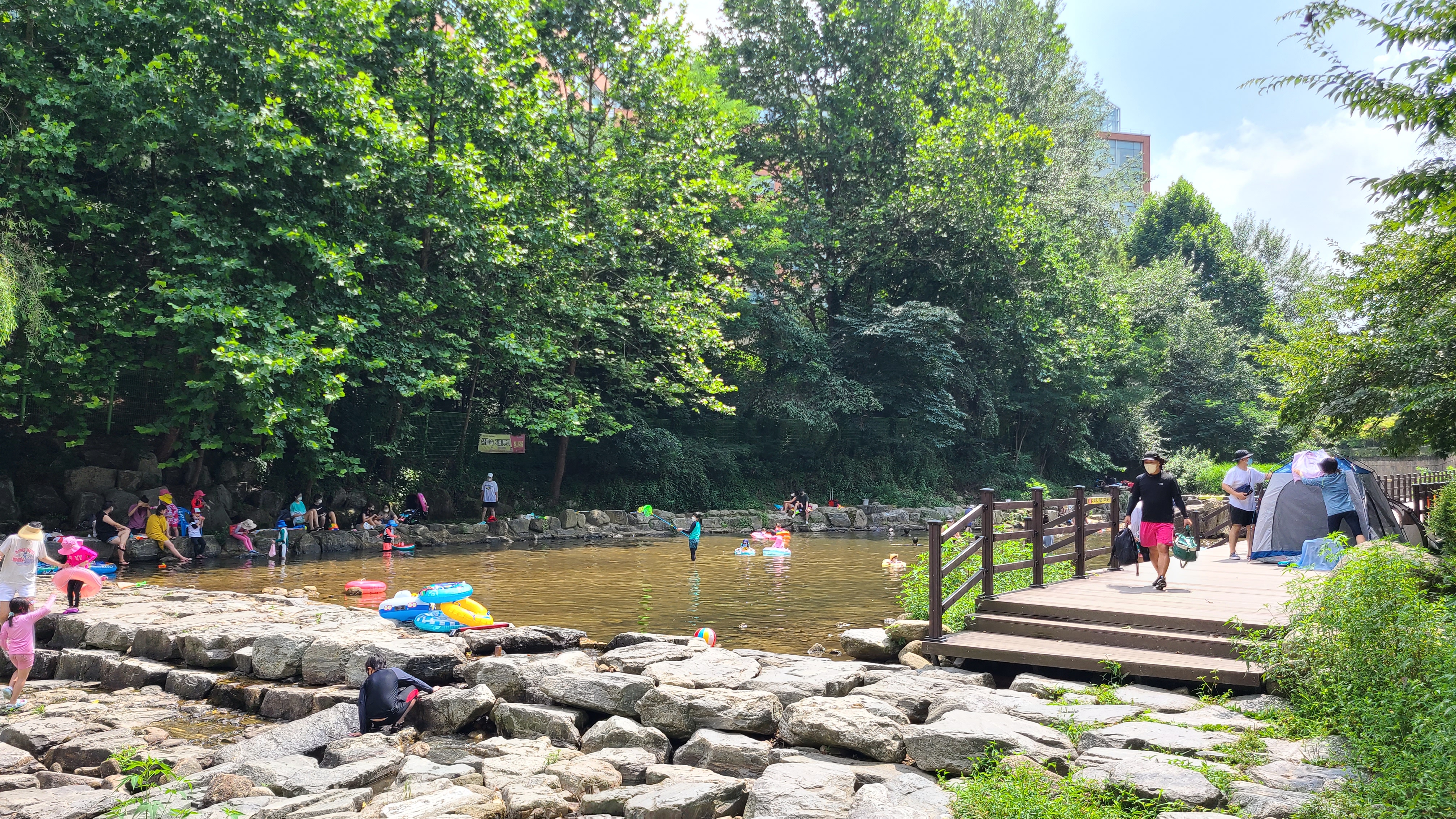 호수공원을 지나니 합류되는 지점이라 물이 조금 고여있어 아이들을 데리고 피서나온