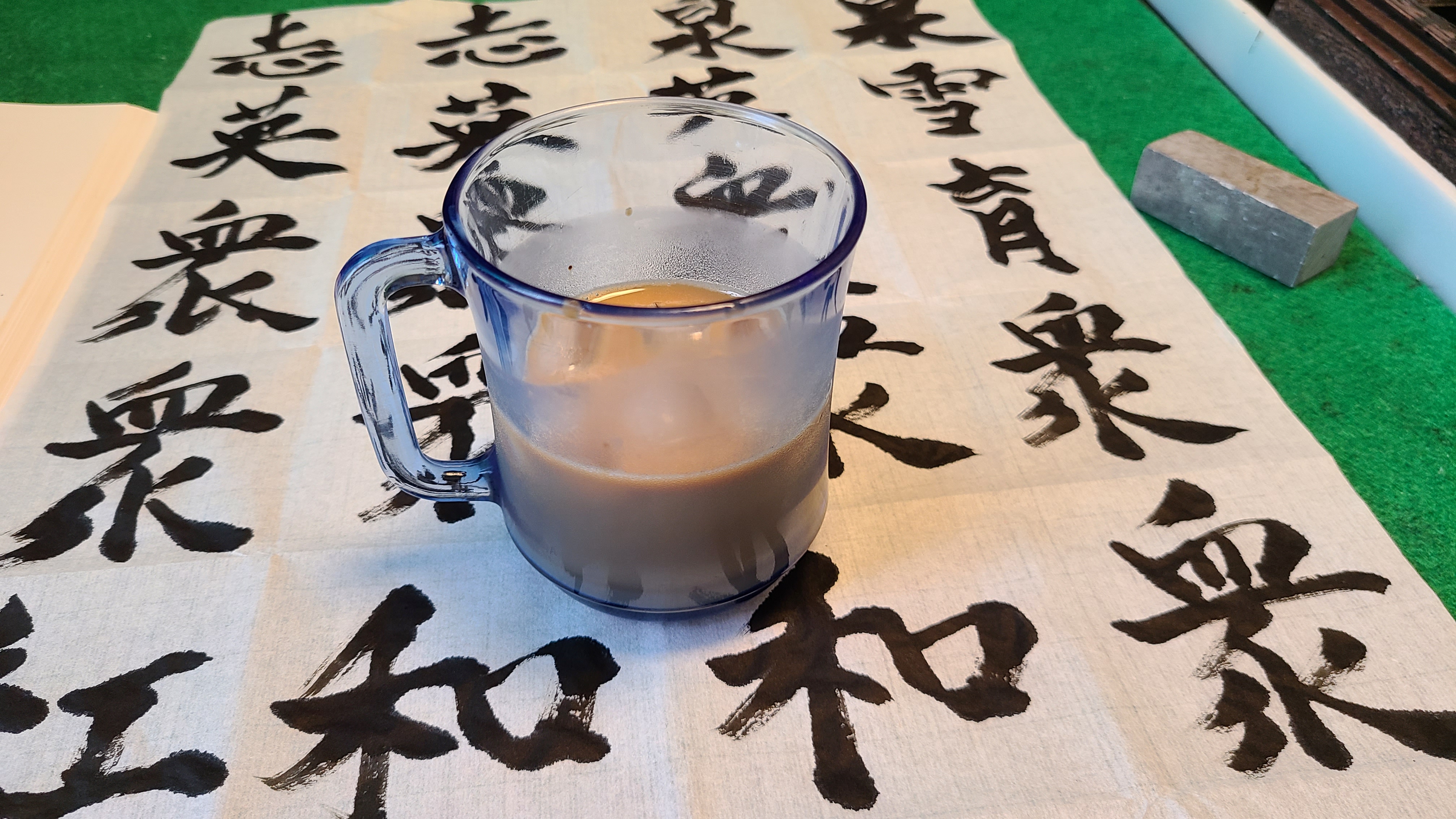 <아침후 화선지를 펼치고 붓을 잡다보면 도반이 타주는 한잔의 냉커피가 가슴가득 행복감을 느끼게한다.>