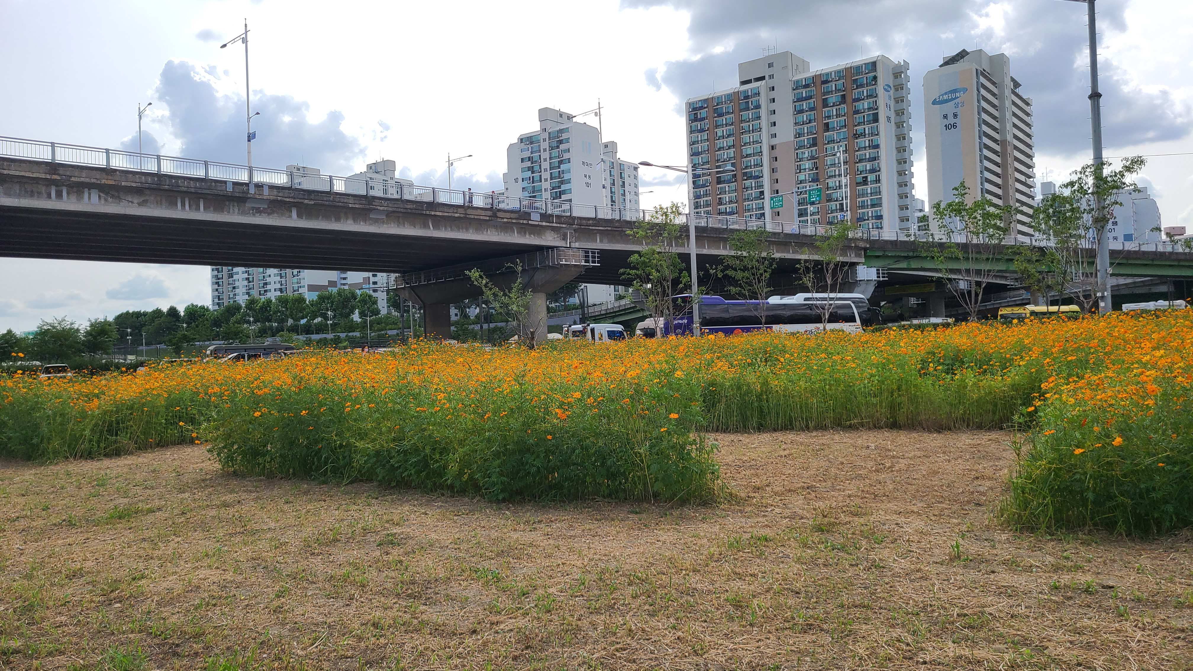 실제 나서니 바람이 불어 크게 덥다는 느낌이 없어진다. 신정교를 올라서니 천변에 가꾸어놓은