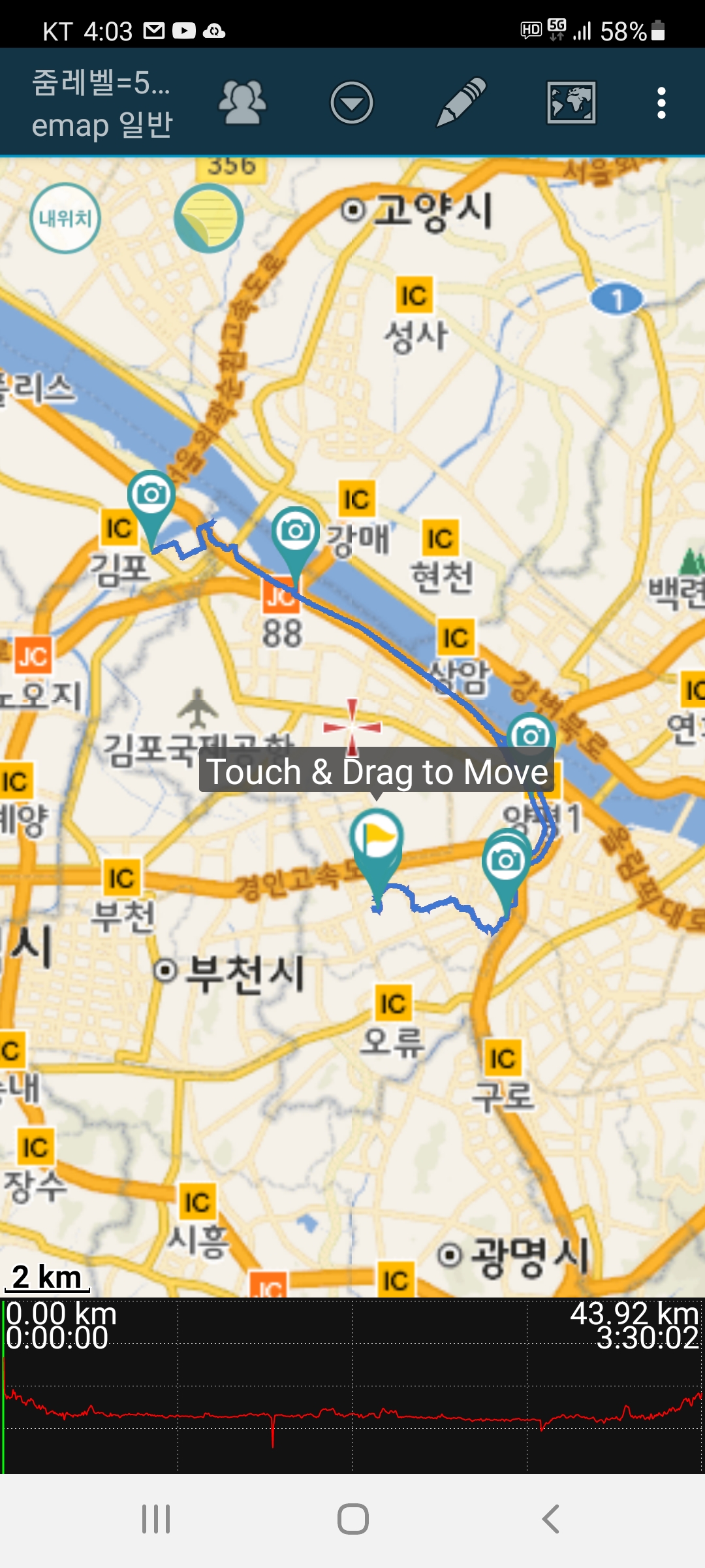 3.신정교-한강합수부-방화대교-아라갑문-아라뱃길입구-원점회귀, 43.92 km