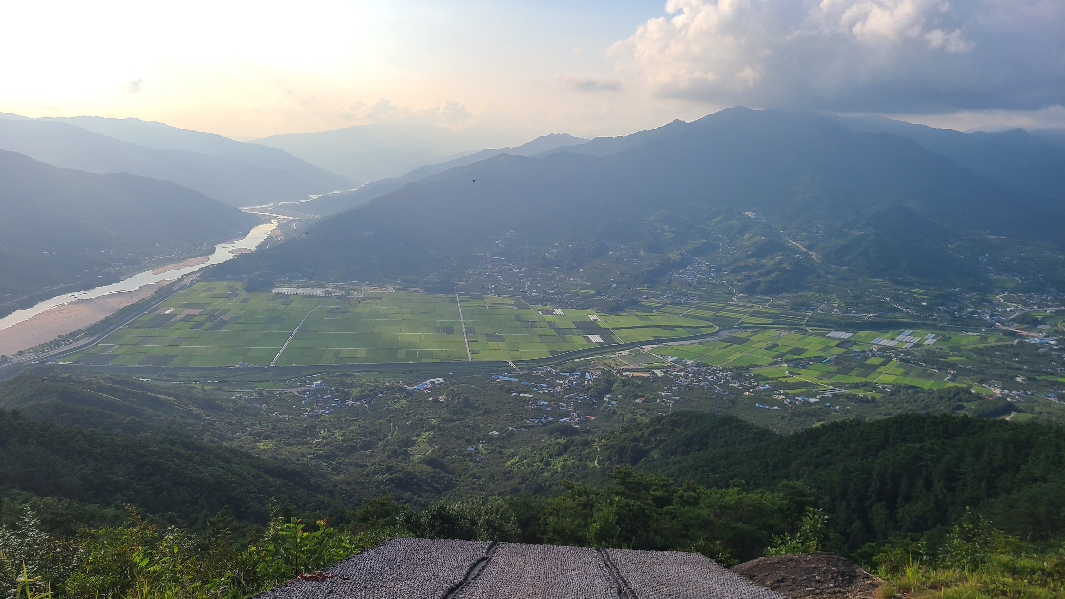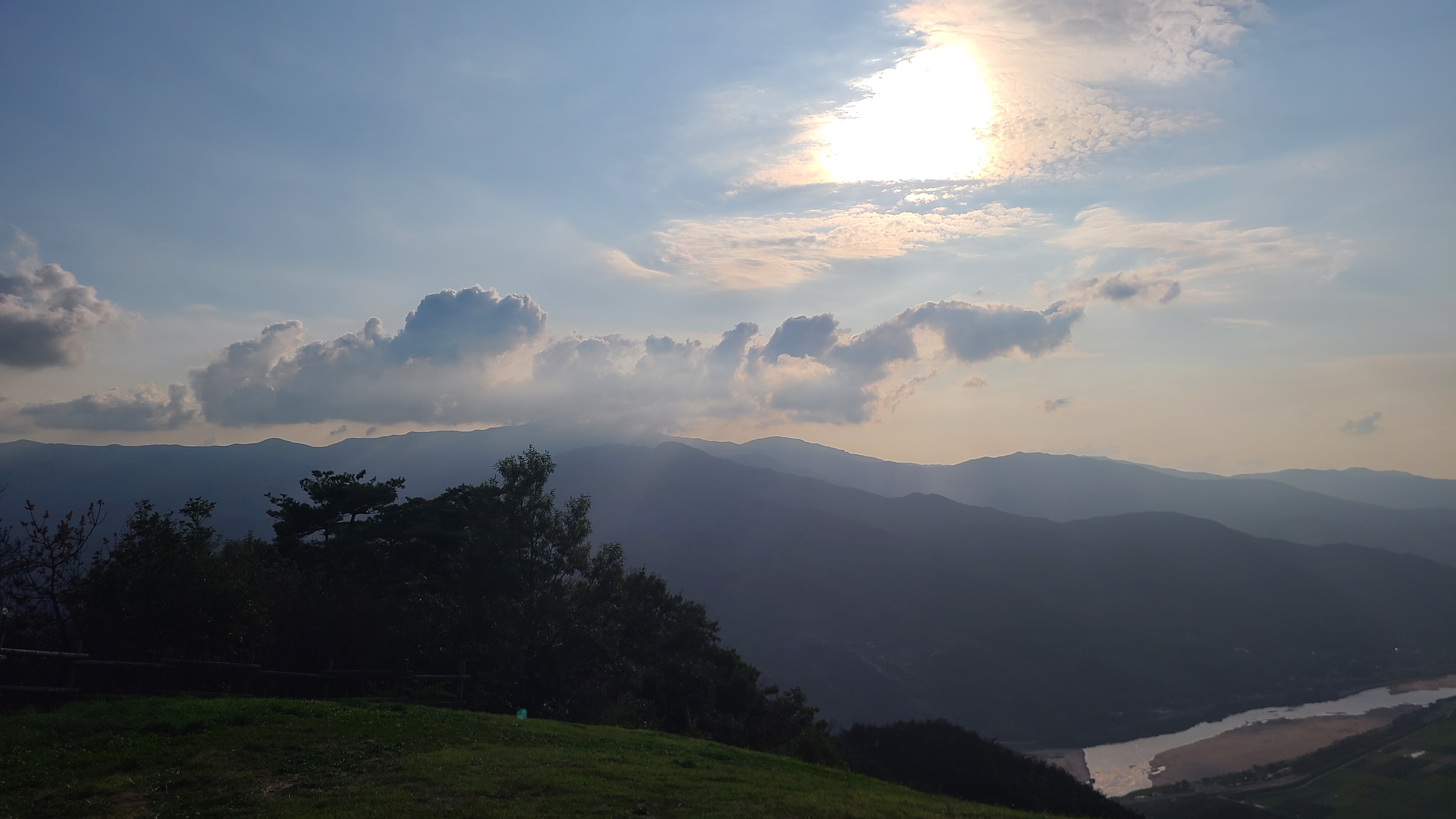 주차를 하고 바라보니 구름에 가리워졌다가 나타나는 지리산군의 자락과 섬진강과 그일대가 발아래 펼쳐지는