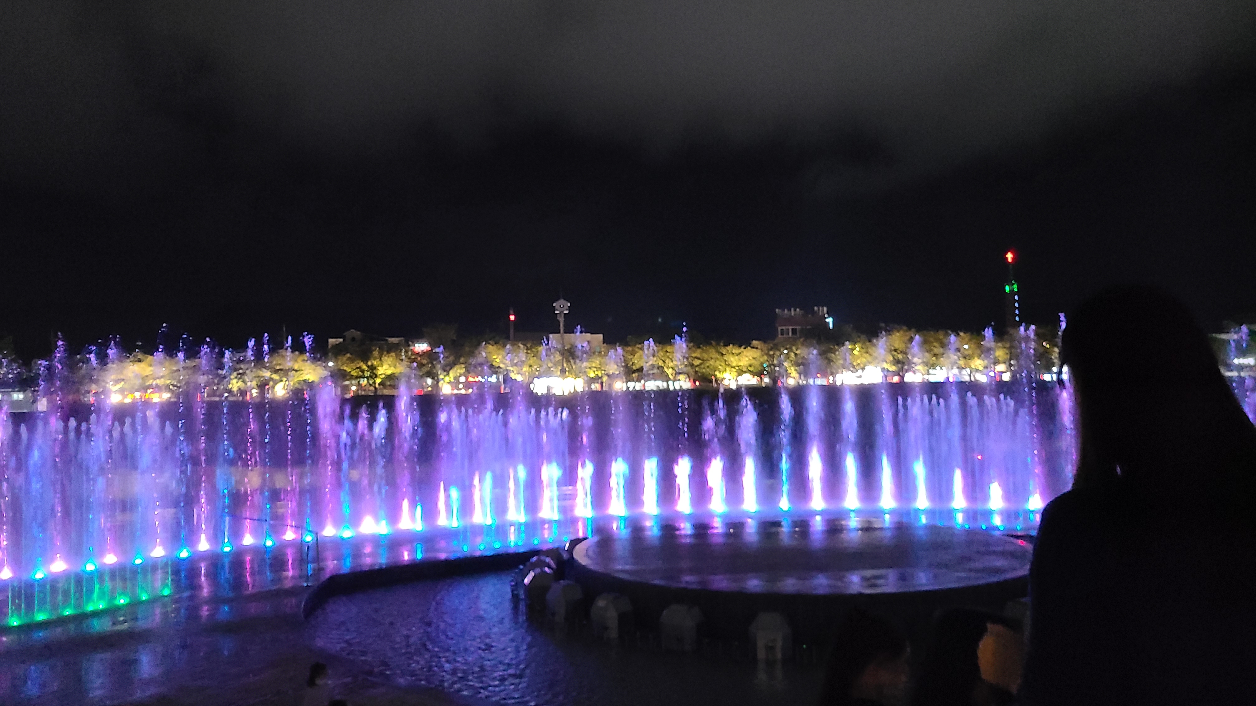 시간이되니 숙소앞 강변에서 춤추는 분수의 공연을 하니 재미있게 관람을 한다.
