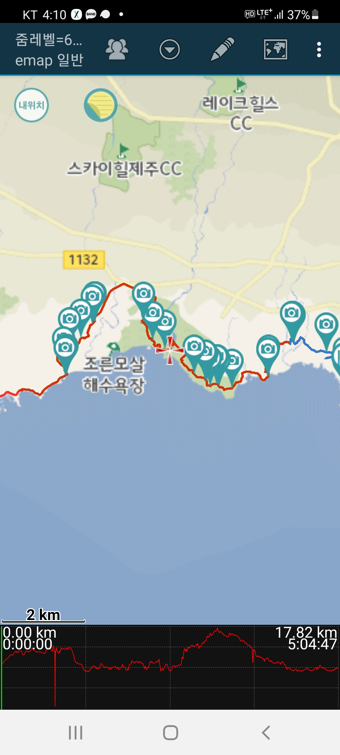 09:45분부터 16:10까지 6시간25분에 걸쳐 17.82km를 걸었다.