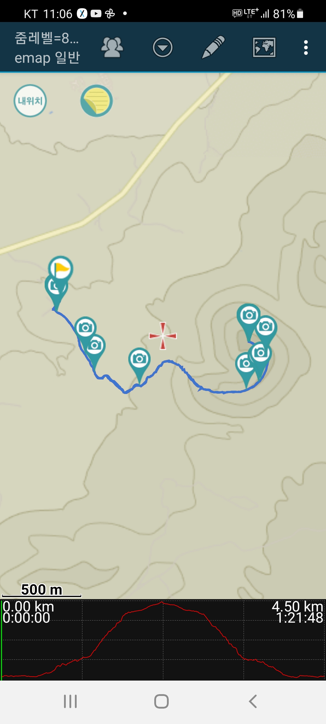쉬지않고 내려 30여분이 소요되어 한시간 십여분이 걸렸다.