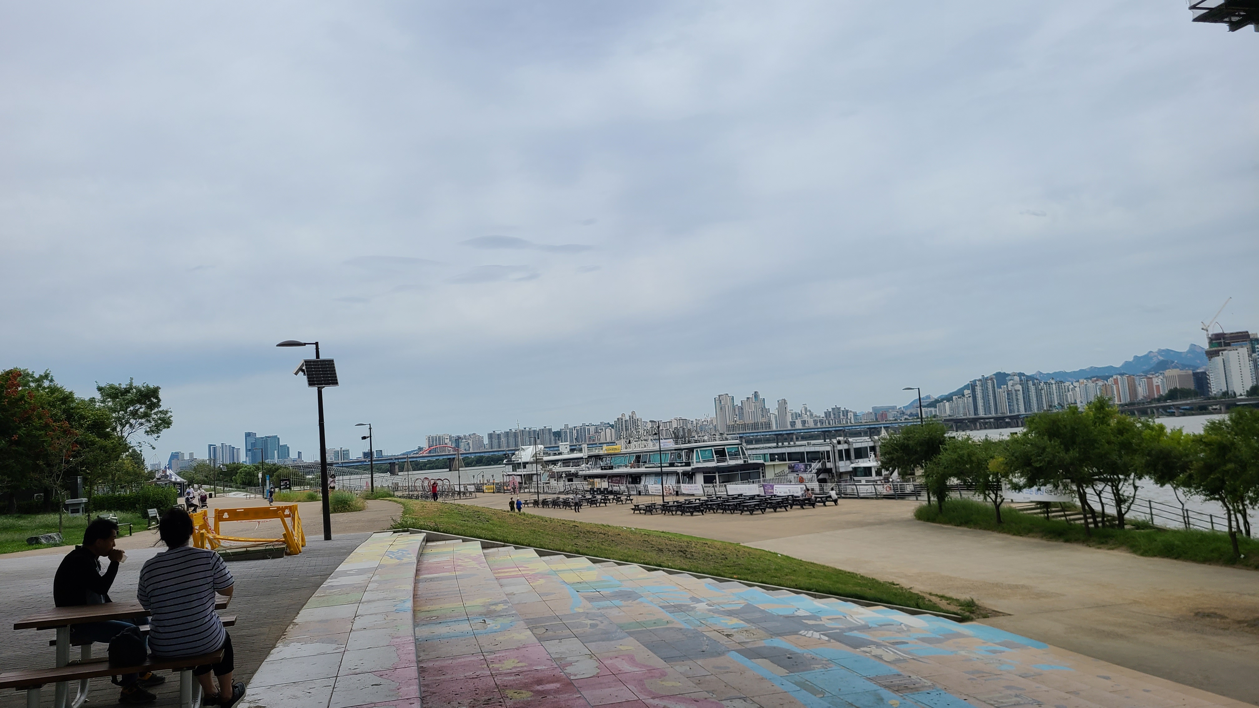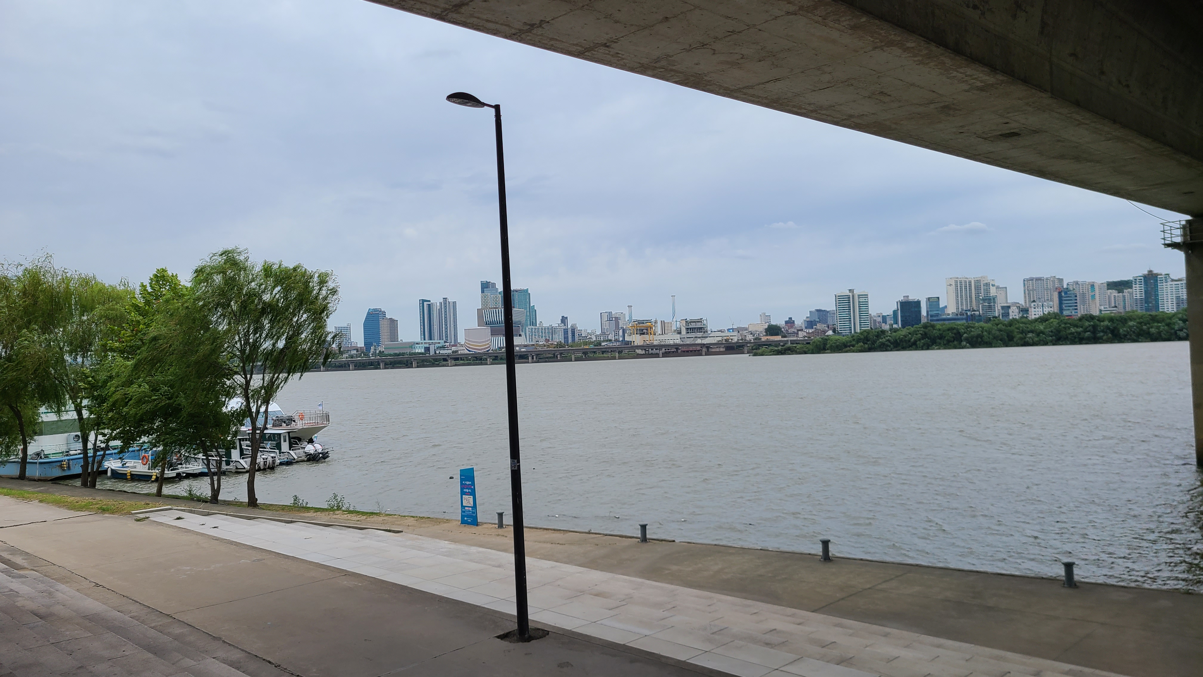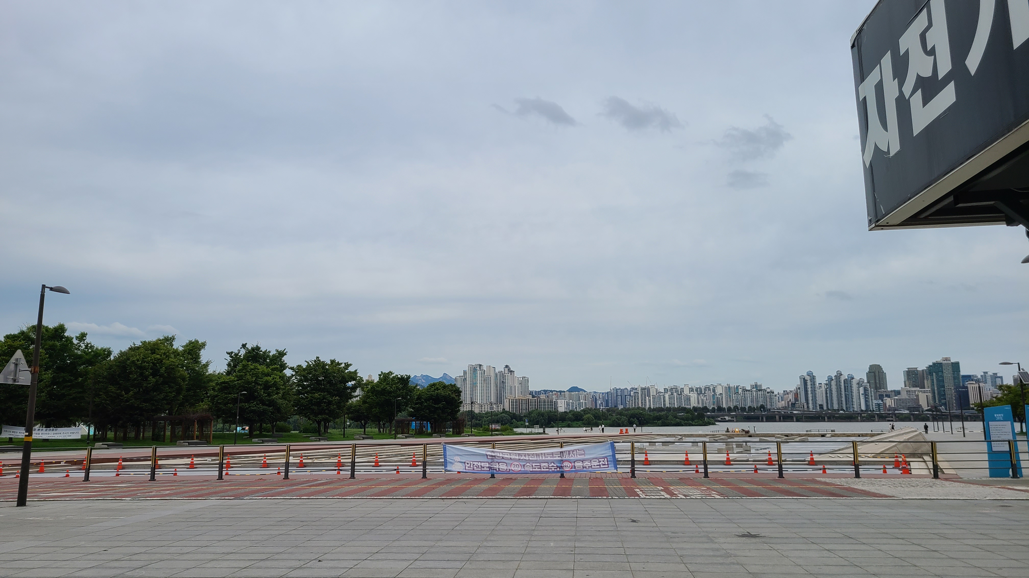 한강의 넓고 일렁이는 물결을 바라보고 멀리 북한산이 뚜렷하게 눈앞에 펼쳐진다.