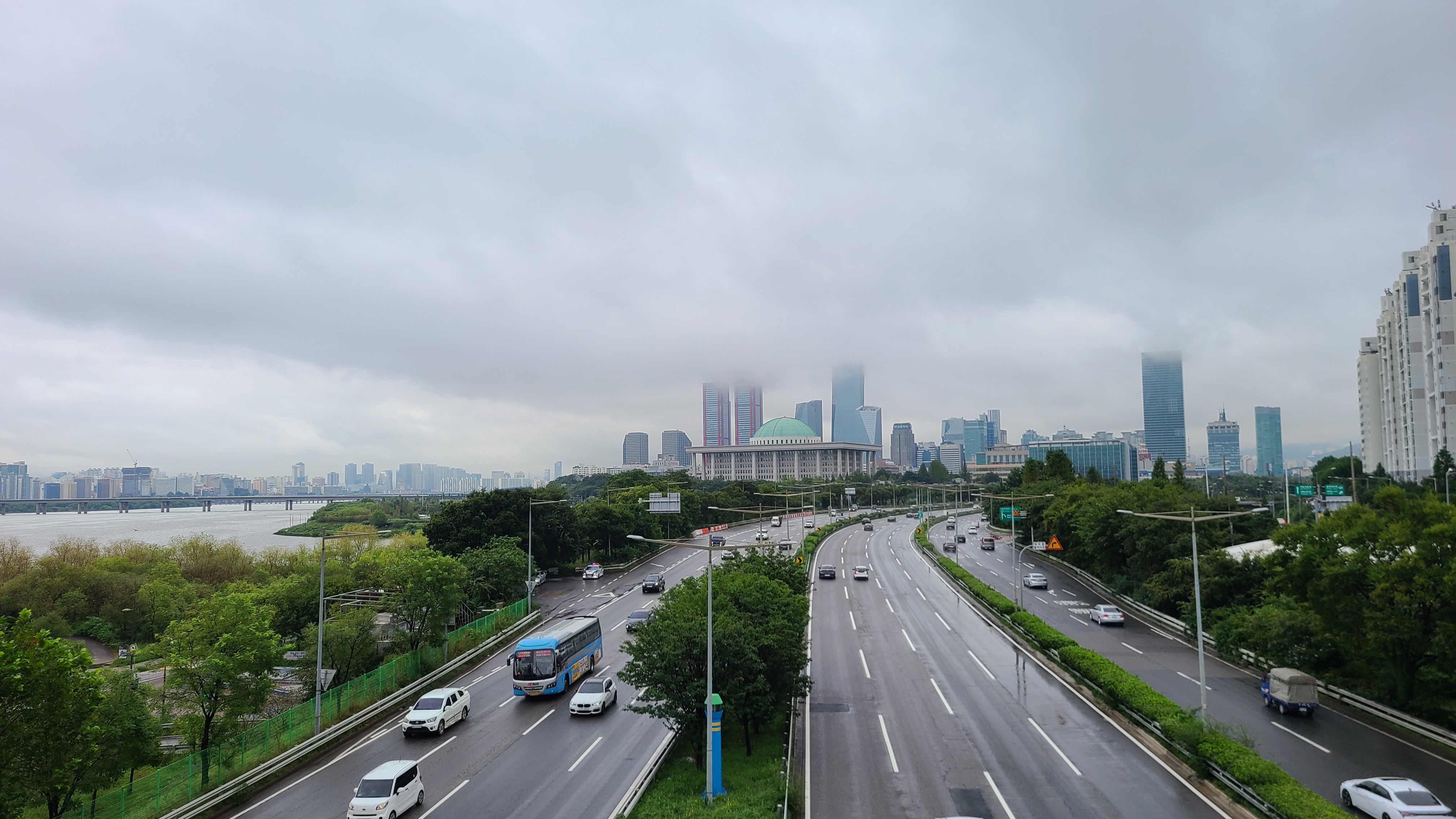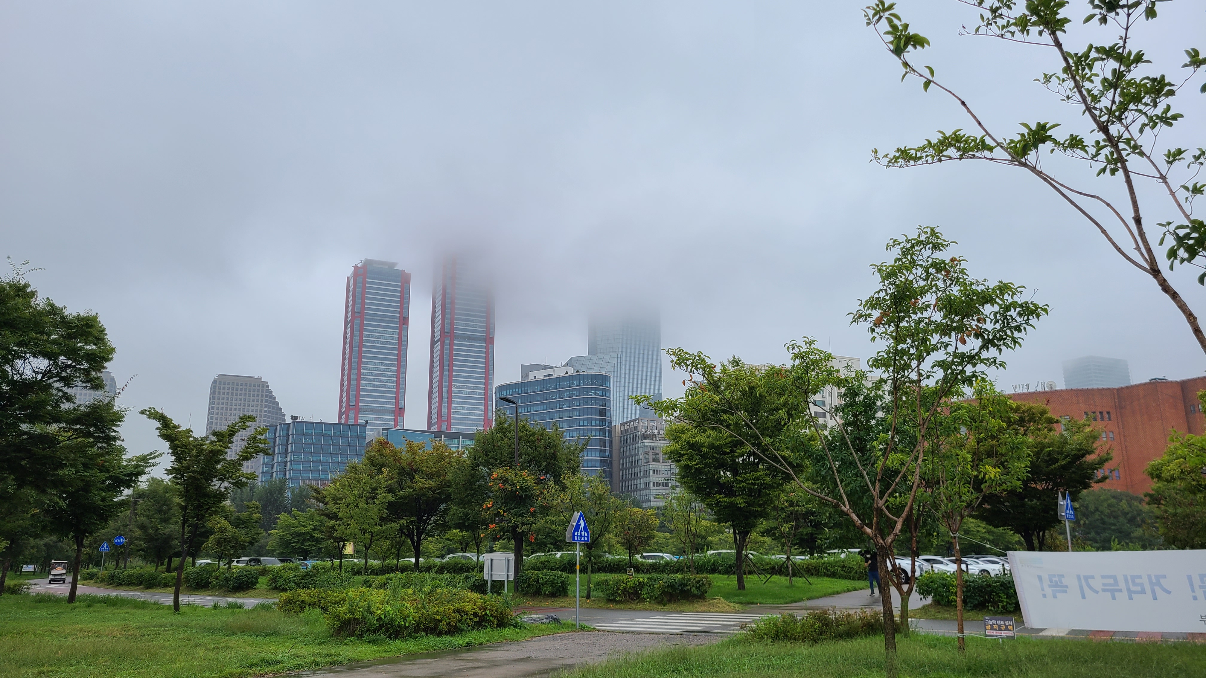 여의도의 고층빌딩들은 어느부분부터는 안개에 가려 보이지않는 장면을 연출한다.