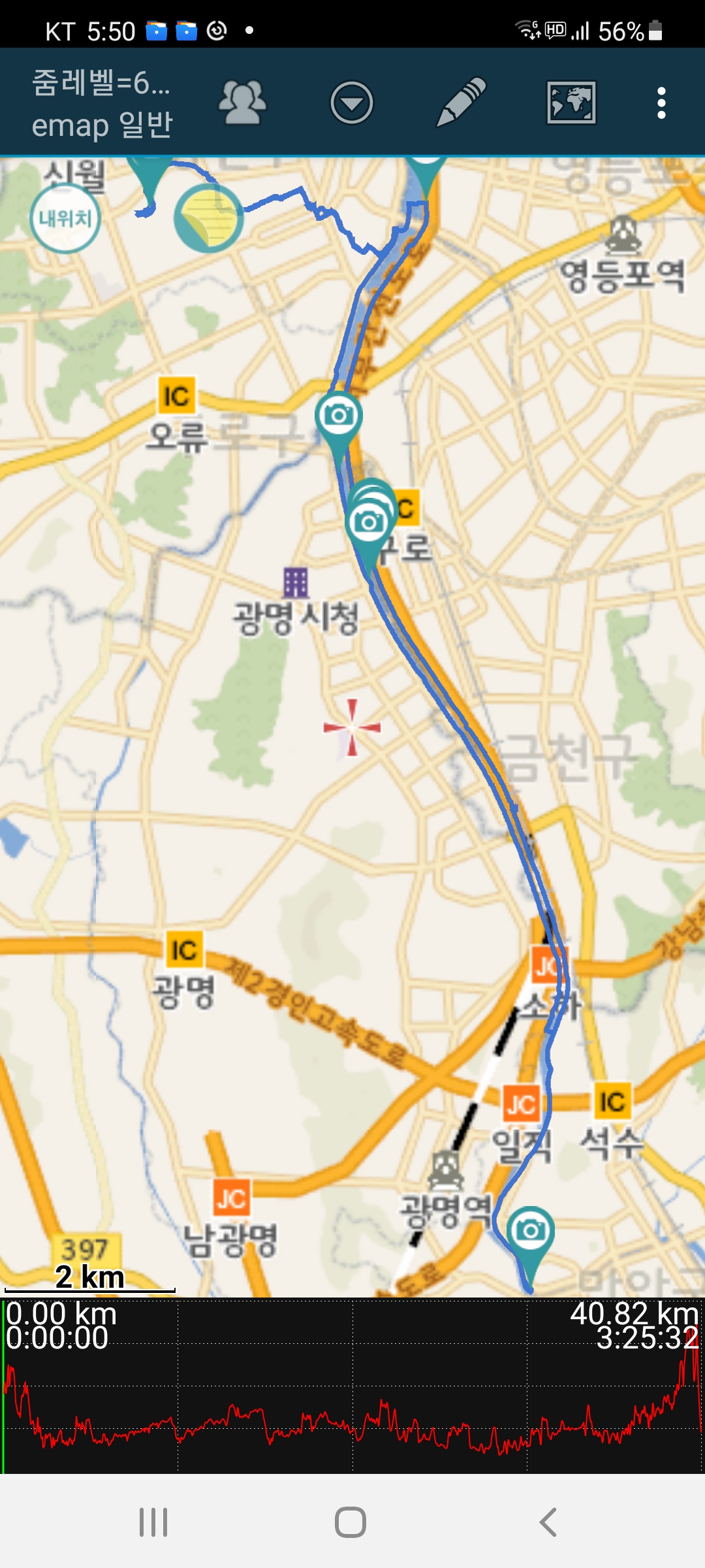 3.신정교-광명대교-안양노루표페인트앞-금천교-원점회귀. 40.82km