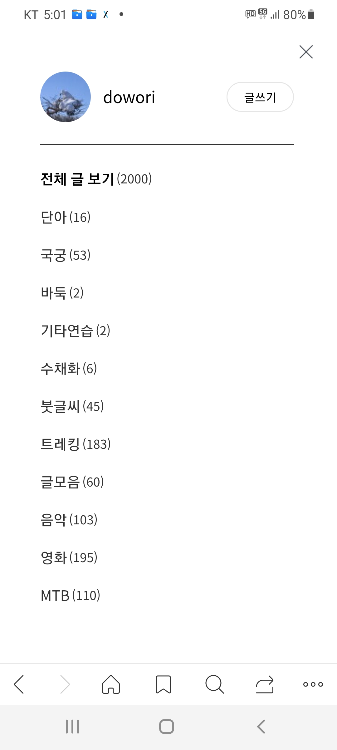 그후 캠핑,트레킹,여행,음악,영화,독서등 다양한 분야의 글을 올렸다.