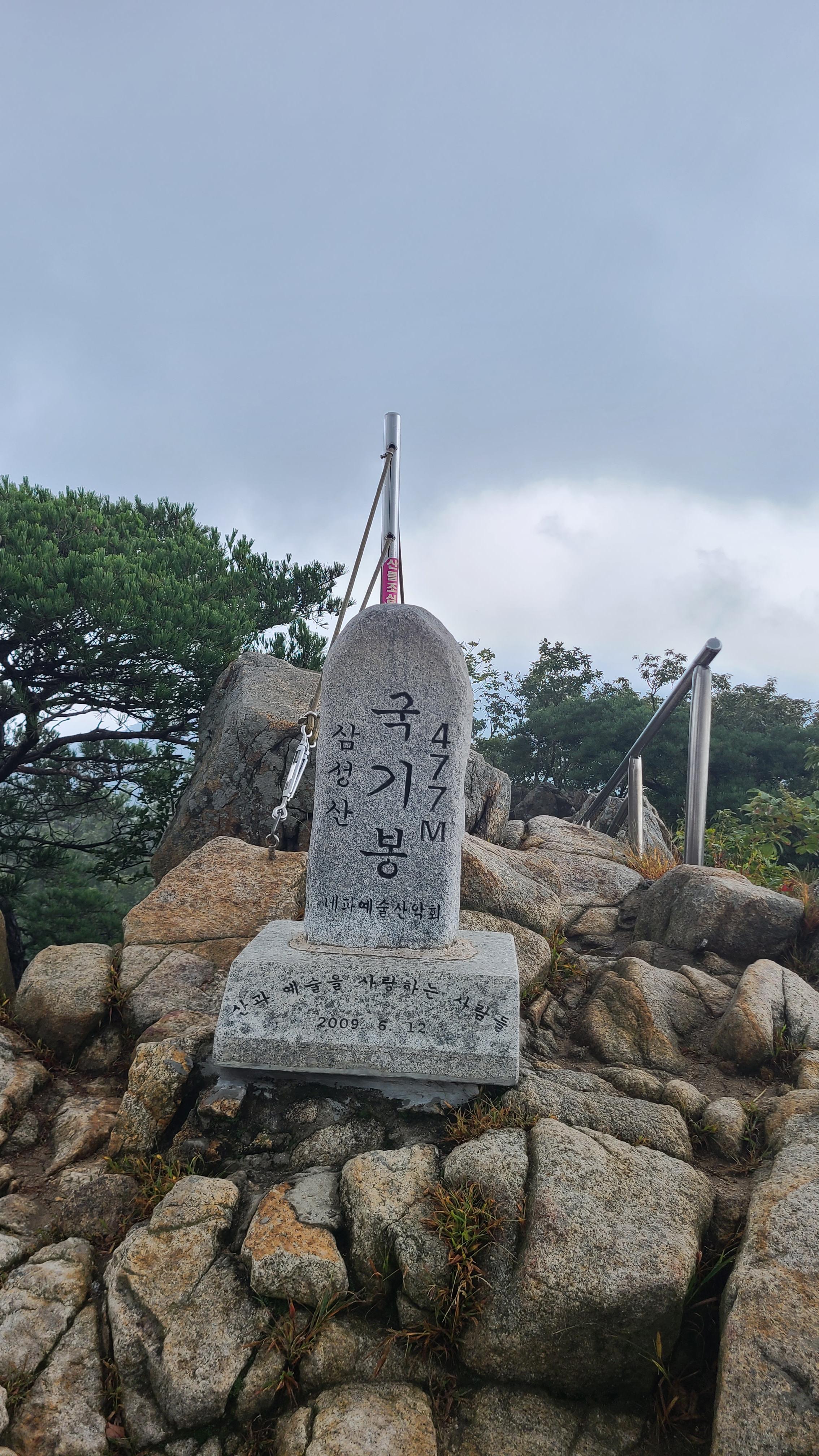 국기봉. 흐린날씨에 명절이니 아무도 없다. 호젓하니 복숭아 하나를 베어먹고나니 비가 내린다.