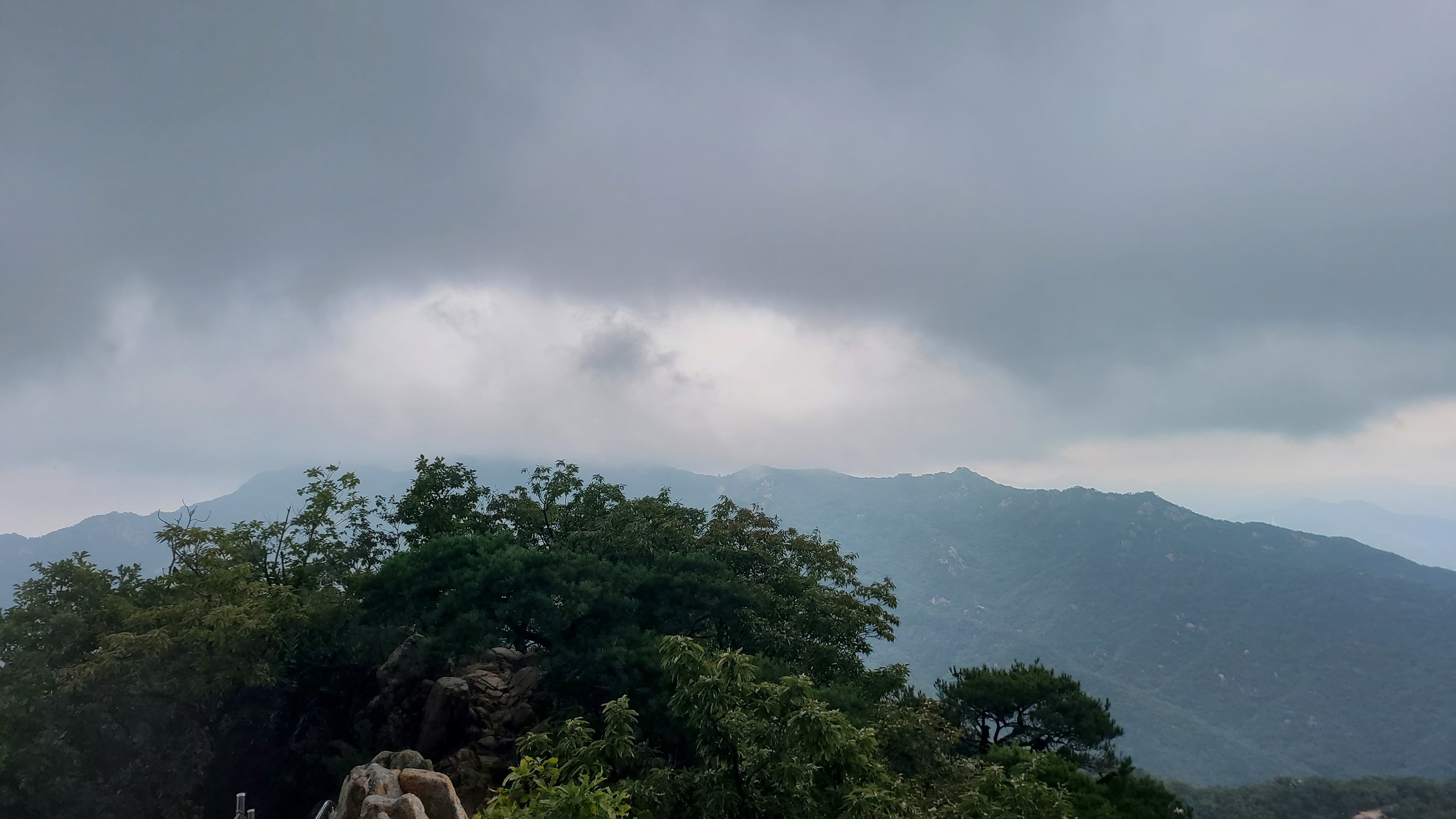 부분적으로 맑게 개이던 하늘이 흐려지더니 빗줄기가 떨어진다. 잠시 지나가는 비려니 하고 오른다.