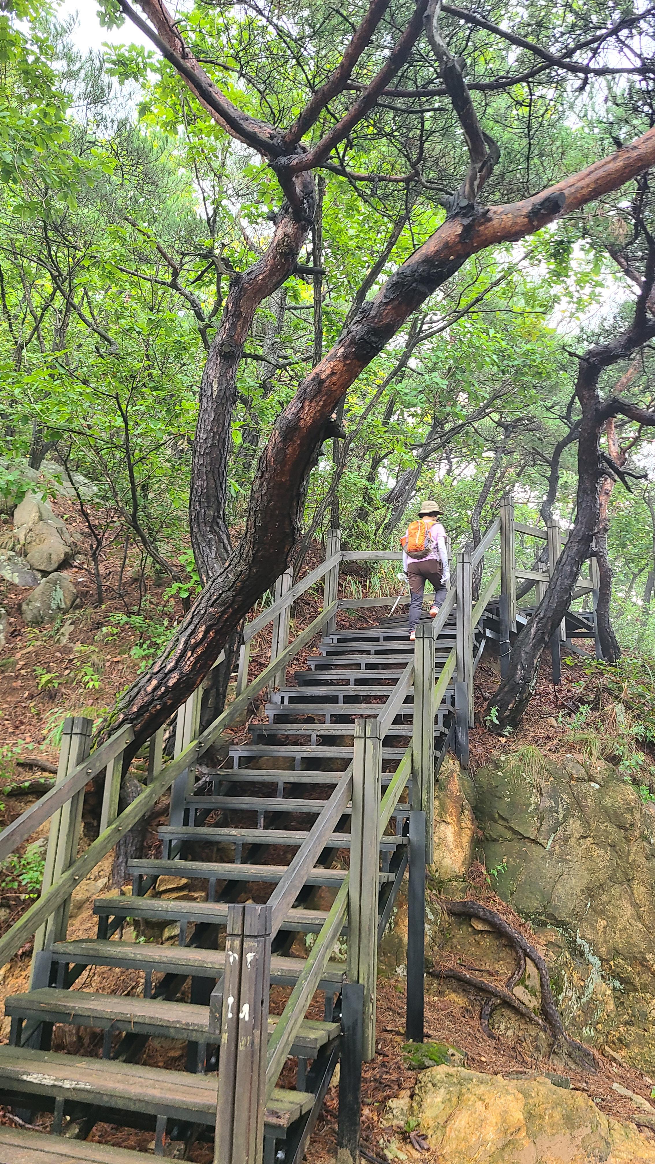 능선에서 계단길로 오르니 밤새내린비로 바위길은 군데군데 물길이 흐르고 미끄럽기도 하다.