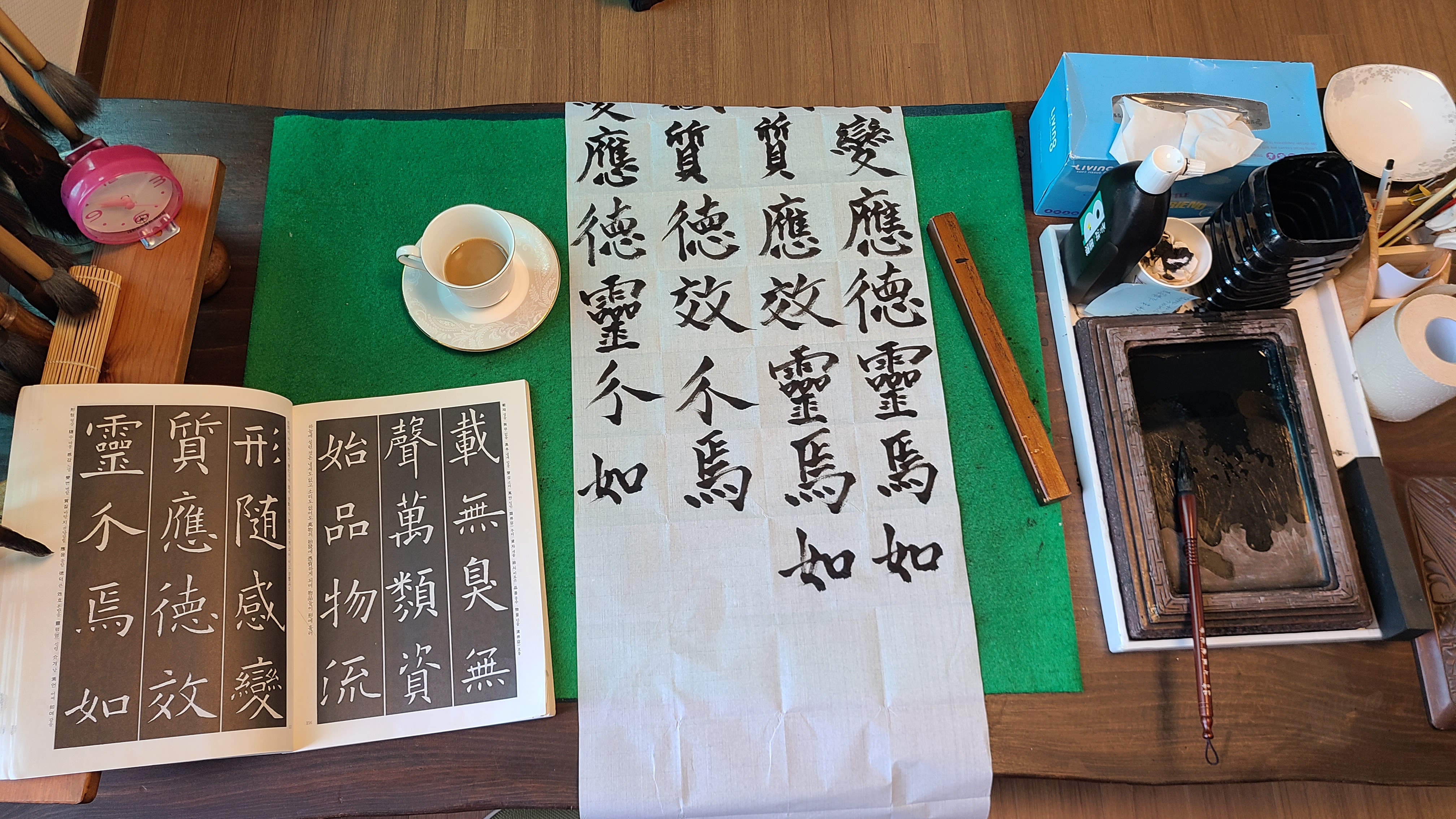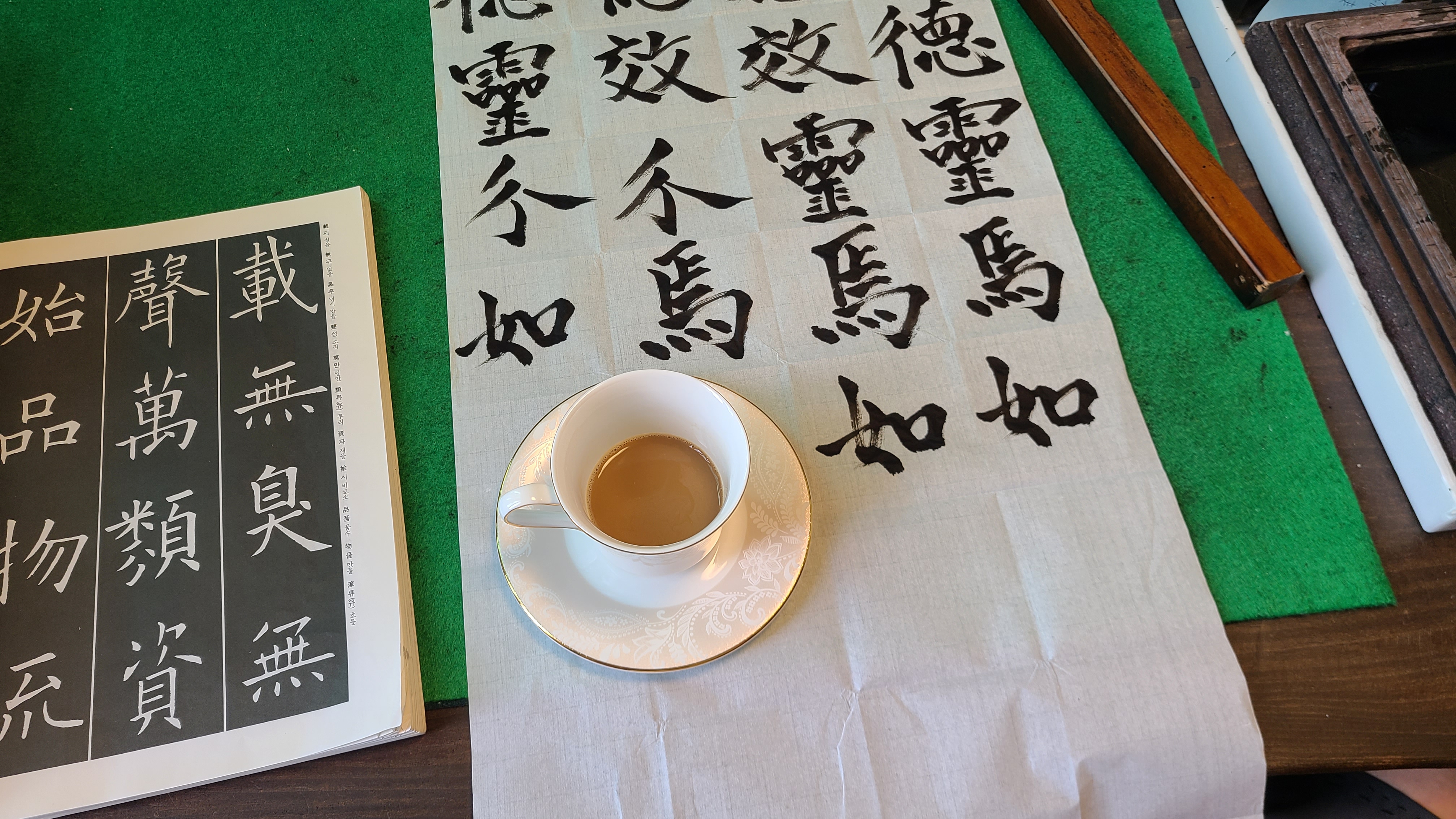 한시간전후로 붓글씨에 전념하다가 보면 도반이 따뜻한 커피한잔을 가져온다.