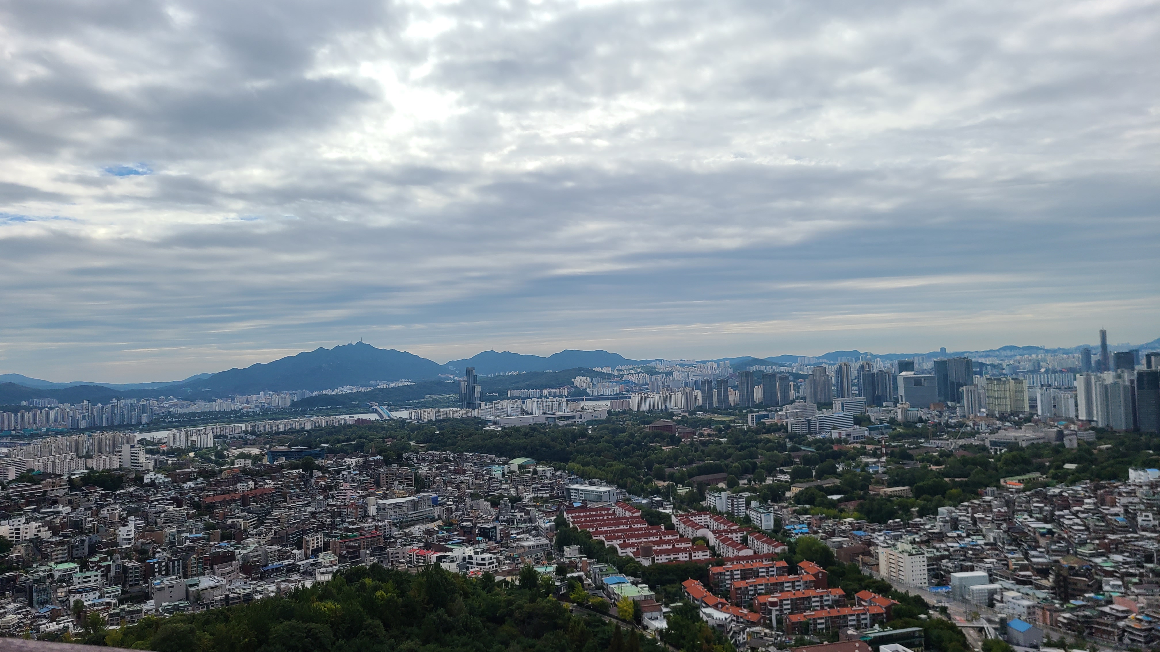 휴식후 다시 남측도로를 따라 걸으며 강남일대를 조망하면서 걷는다.