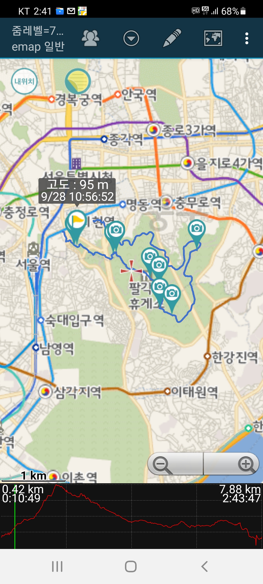 3.남산공원-팔각정-남측순환로-북측순환로-회현동, 7.88km