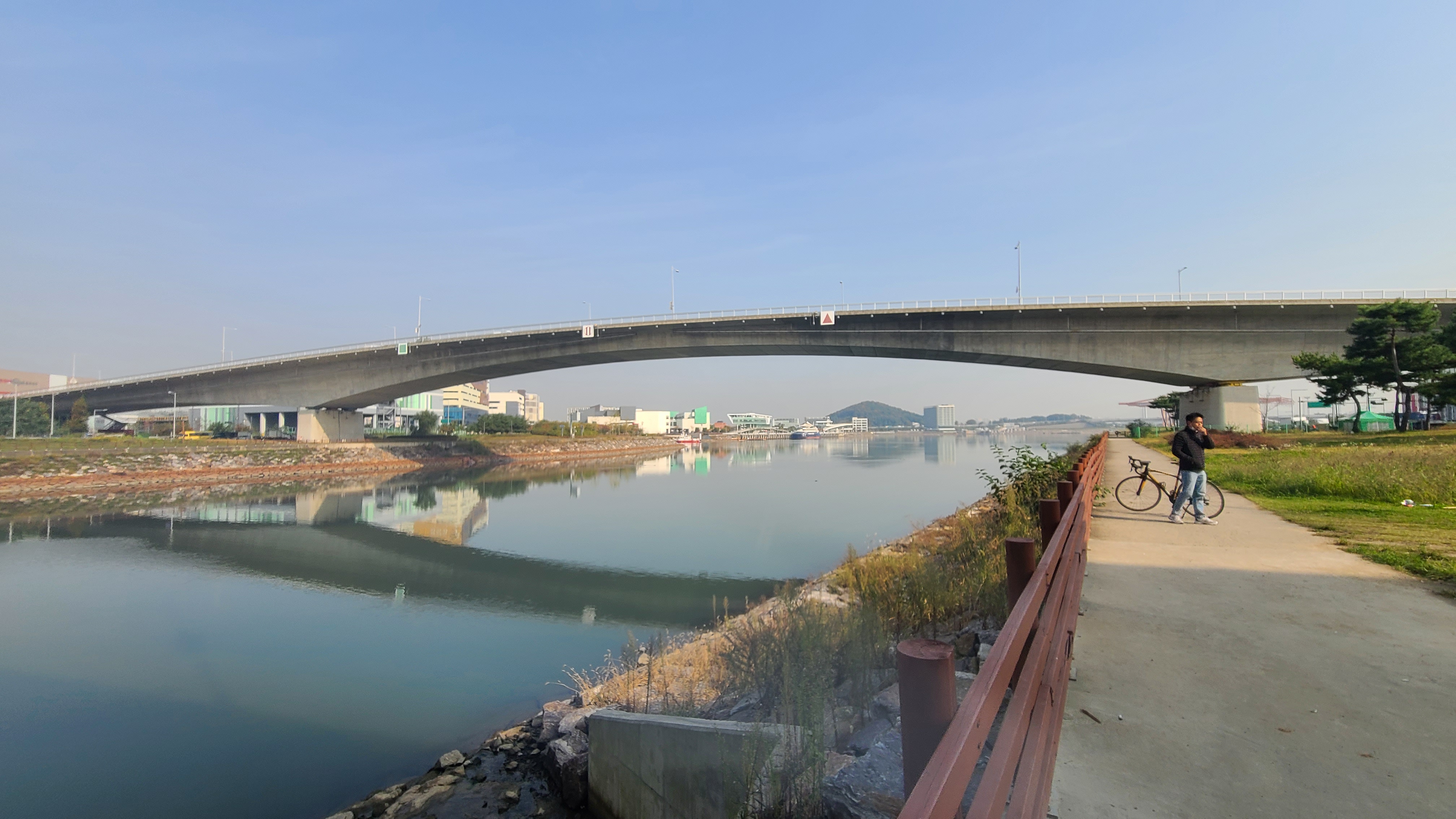 방화대교를 지나 아라뱃길입구에서 항만지대를 통과하여 아라뱃길을 달린다.