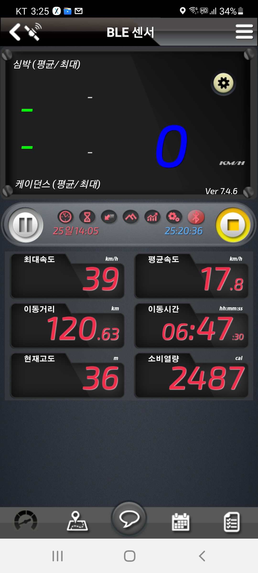 바이크티앱은 어제 종료를 제대로 하지않아 어제와 오늘의 라이딩을 연속으로 표시하고있다.