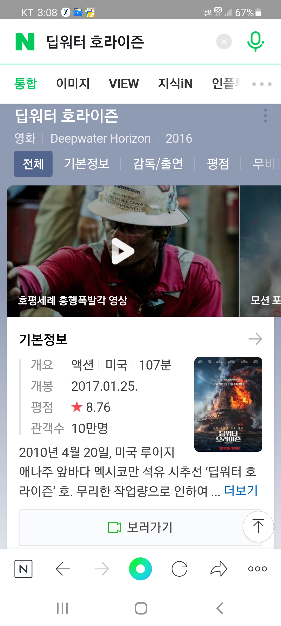 손녀를 돌보러갔다가 오랫만에 휴식을 취하며 감상한 재난영화