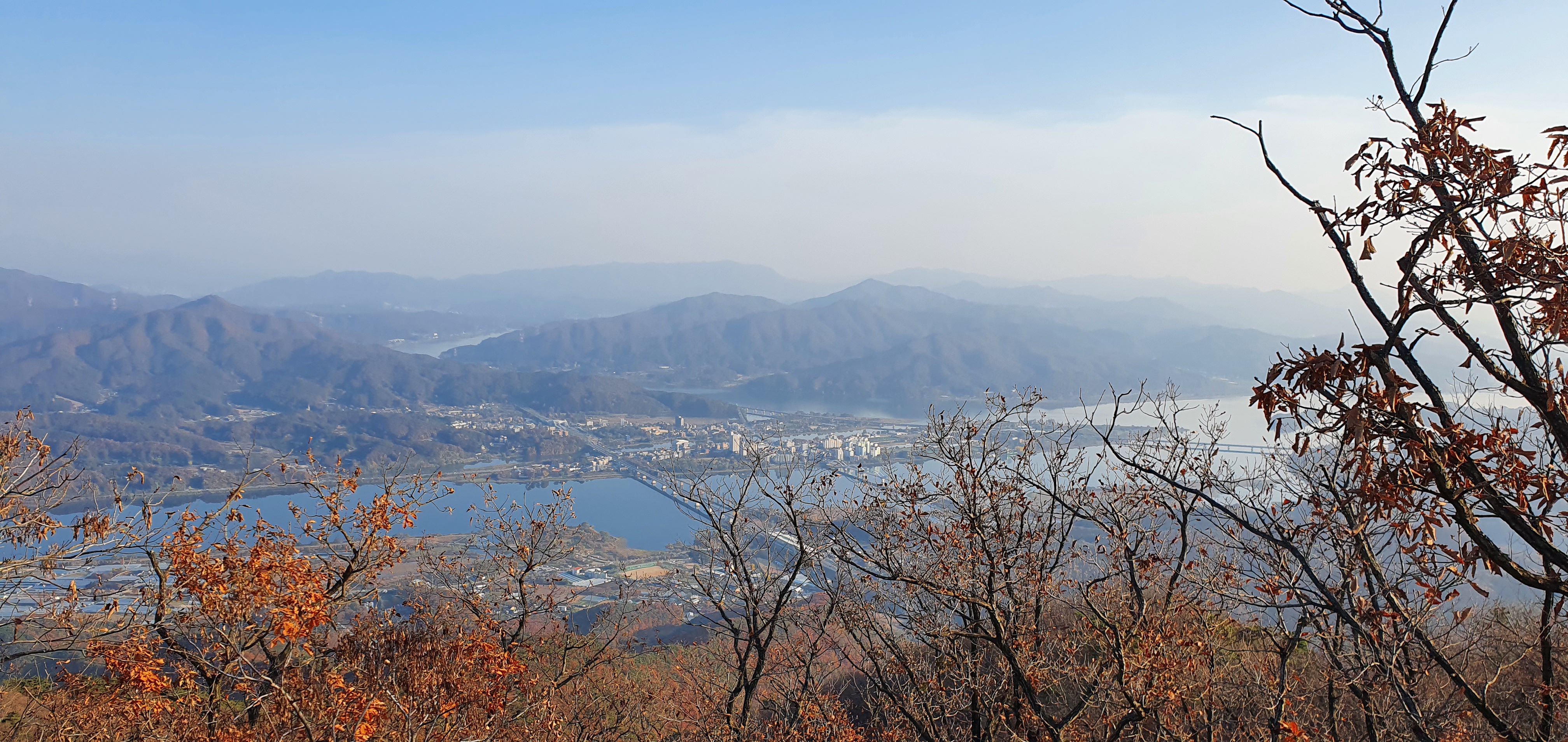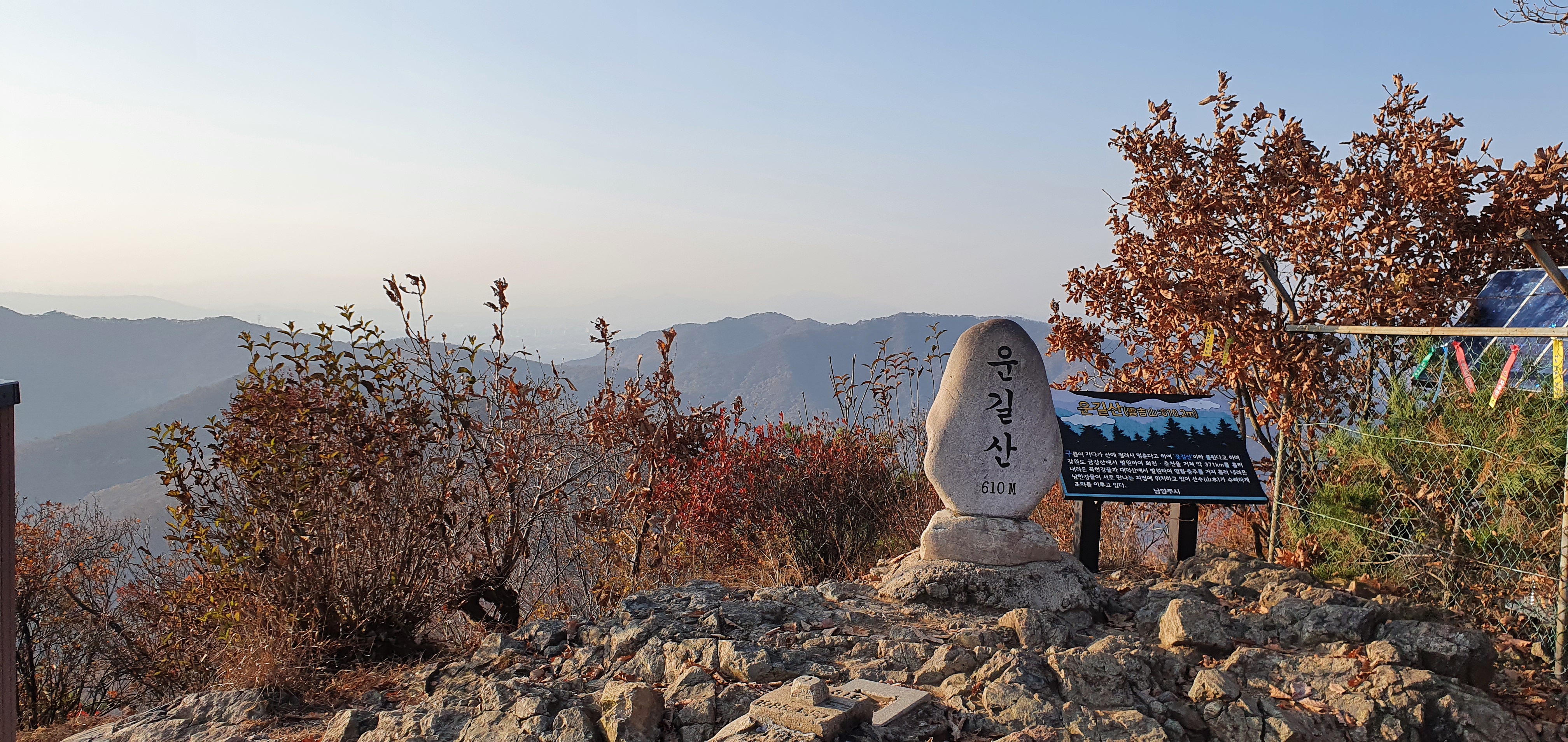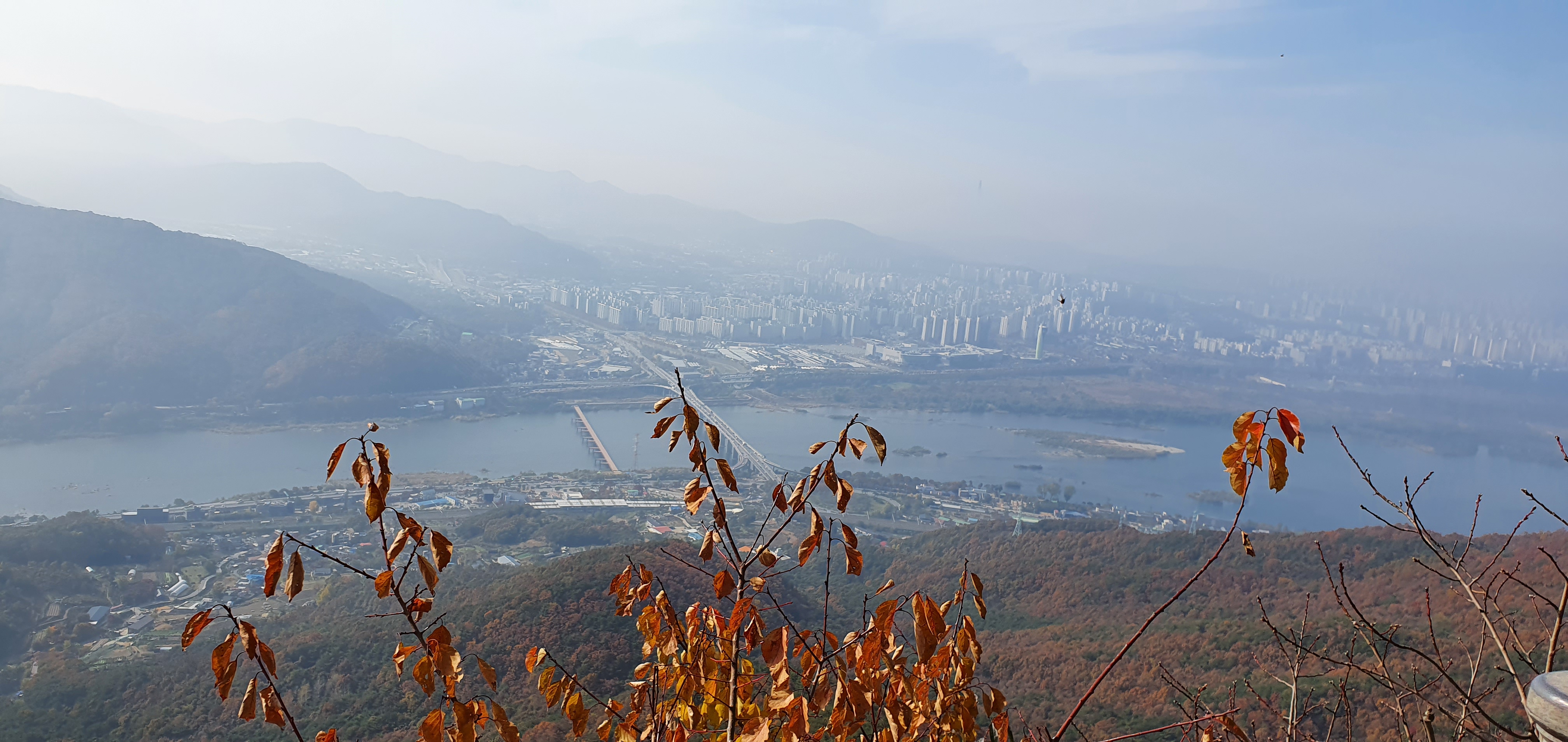 웅장하게 자리잡고있으며, 미세먼지가 있어 시계가 맑지는 않으나 검단산과 구리,하남일대가 눈아래 펼쳐진다.