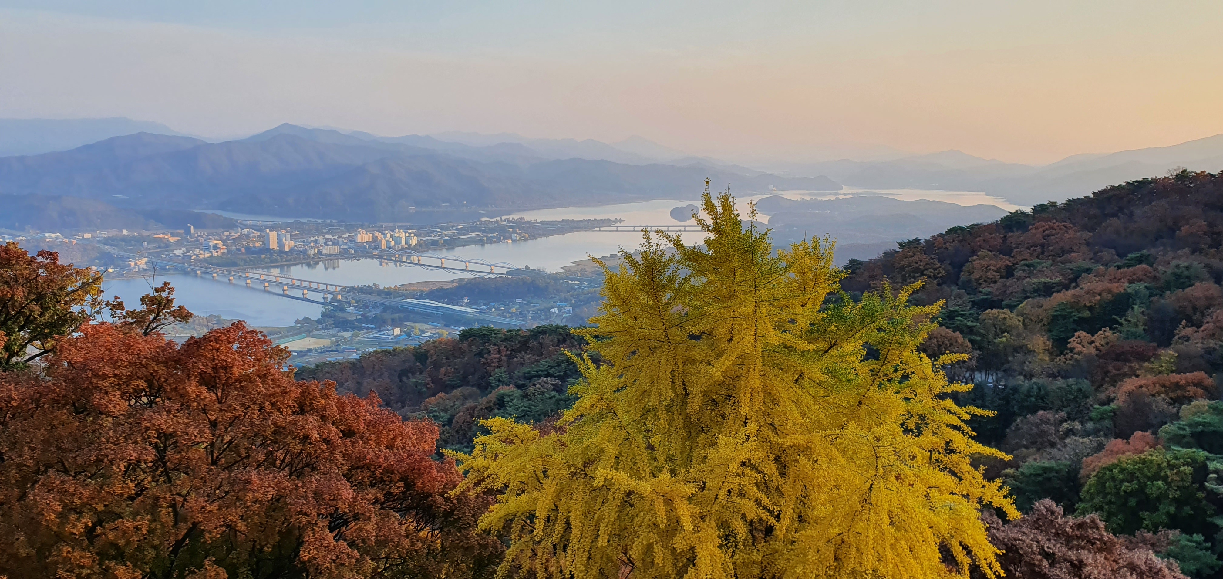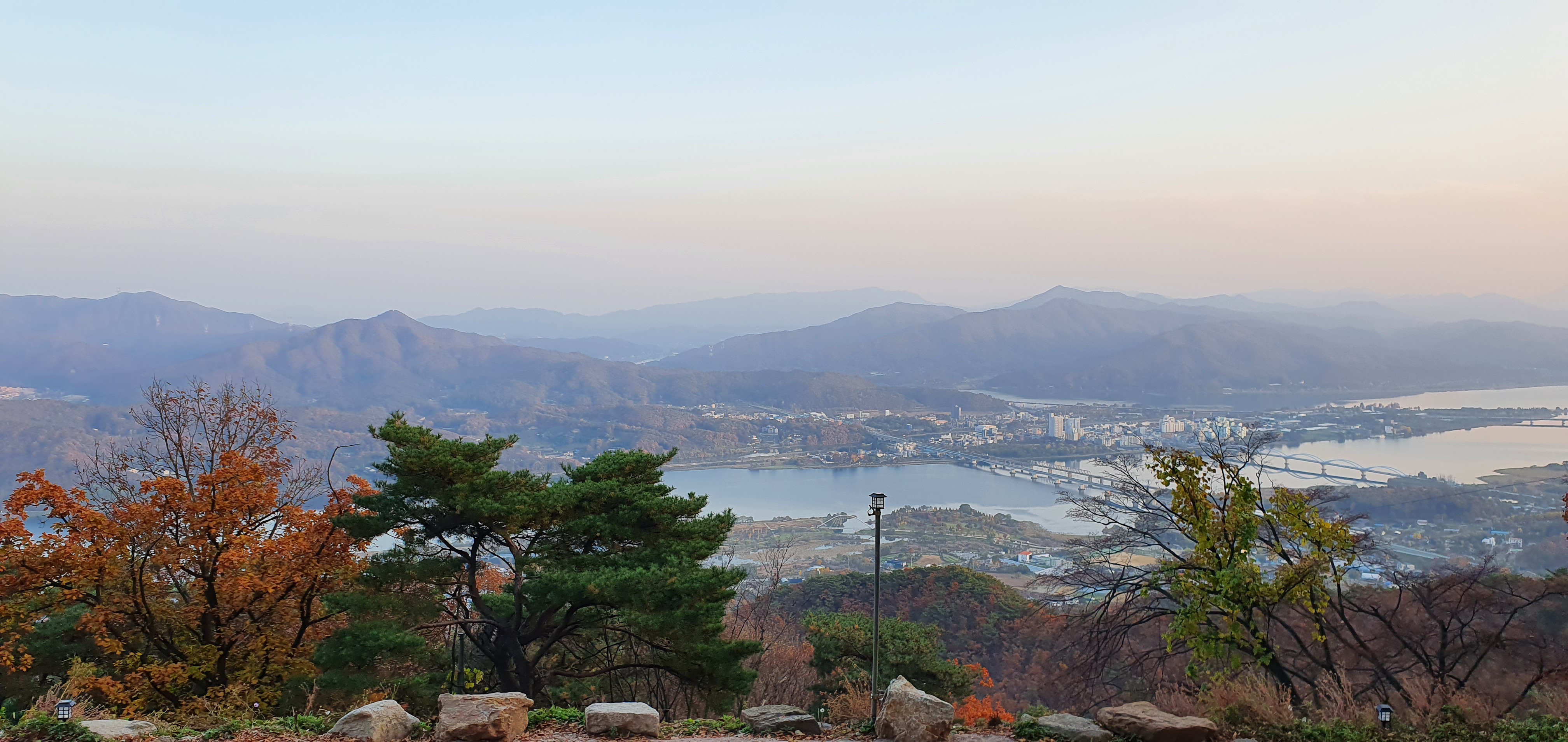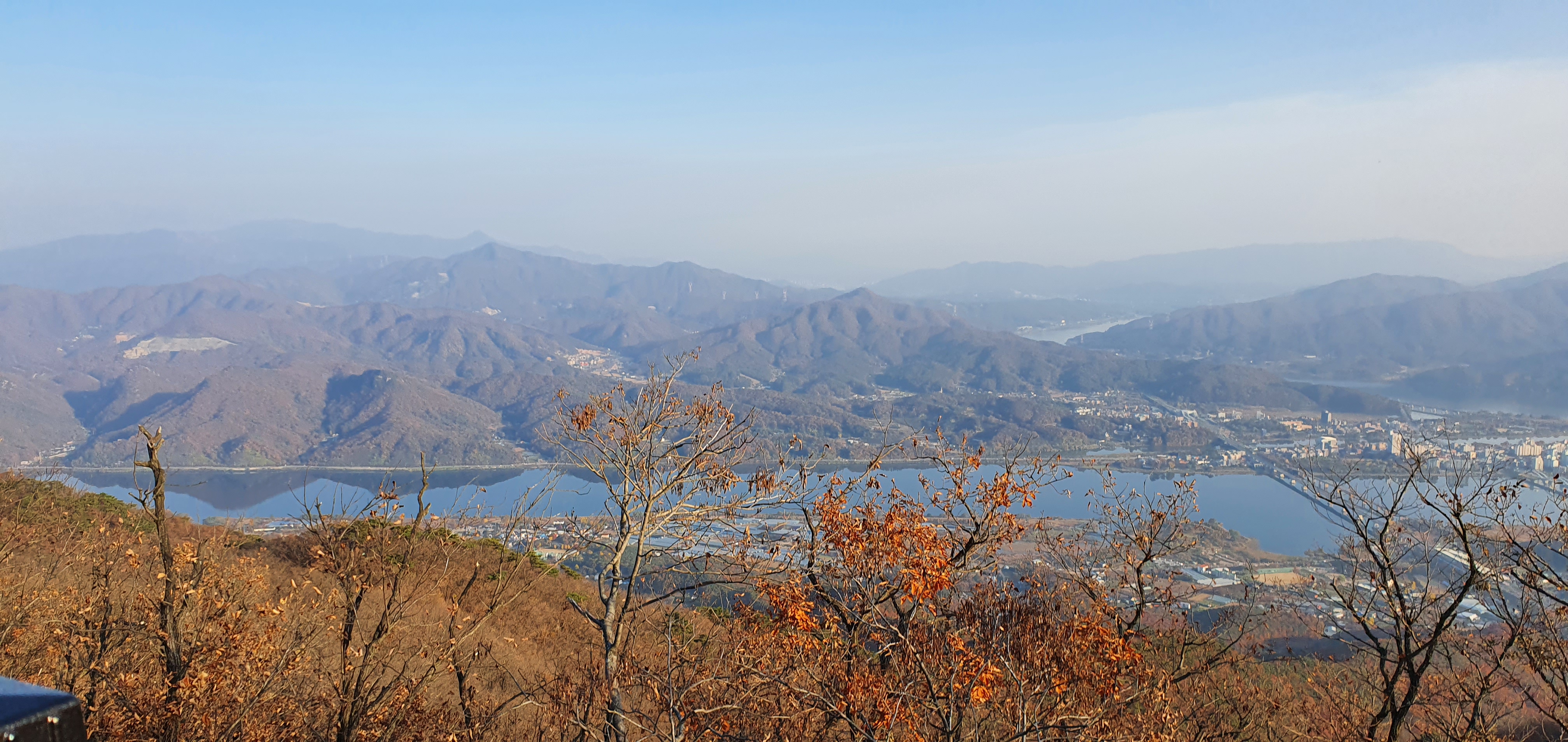 웅장하게 자리잡고있으며, 미세먼지가 있어 시계가 맑지는 않으나 검단산과 구리,하남일대가 눈아래 펼쳐진다.