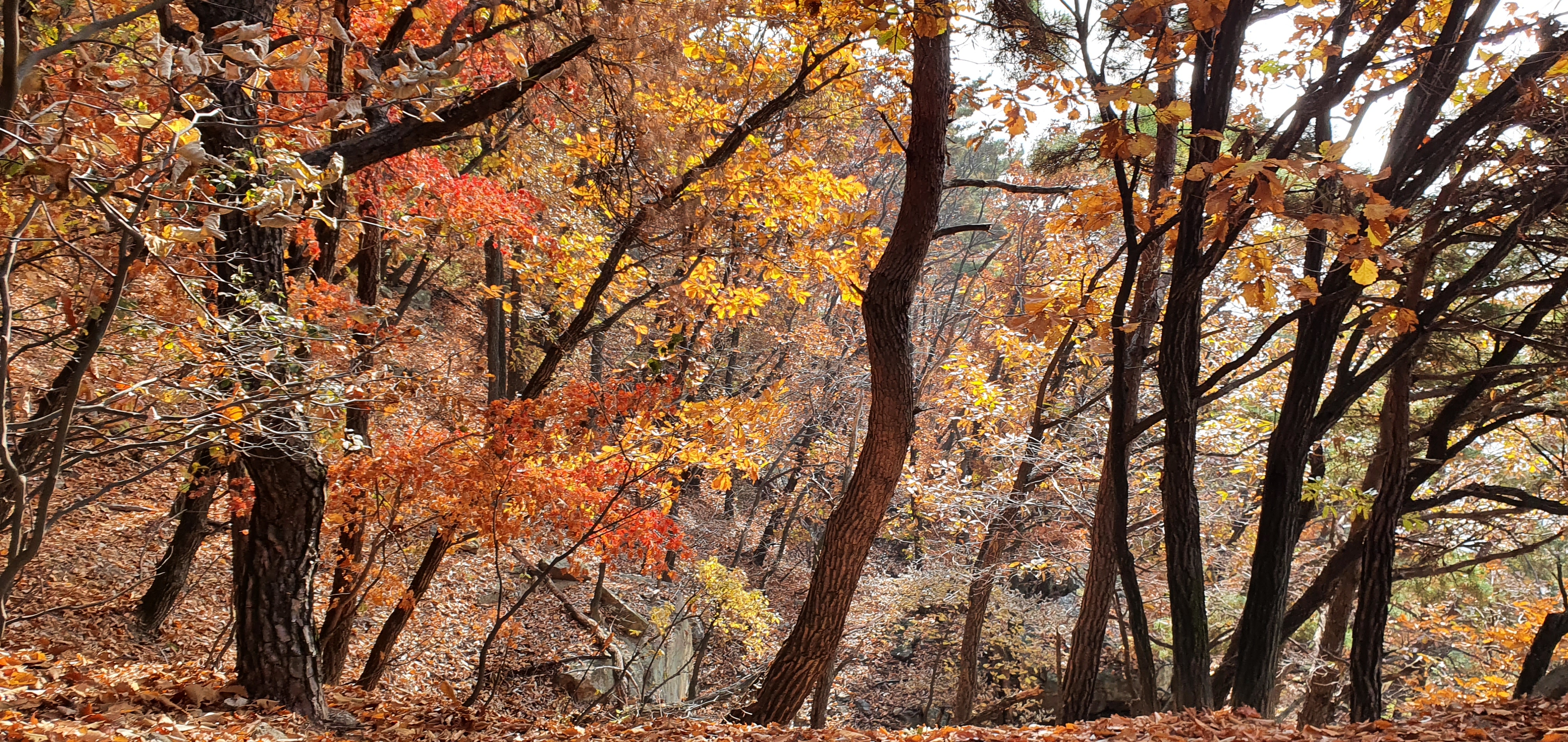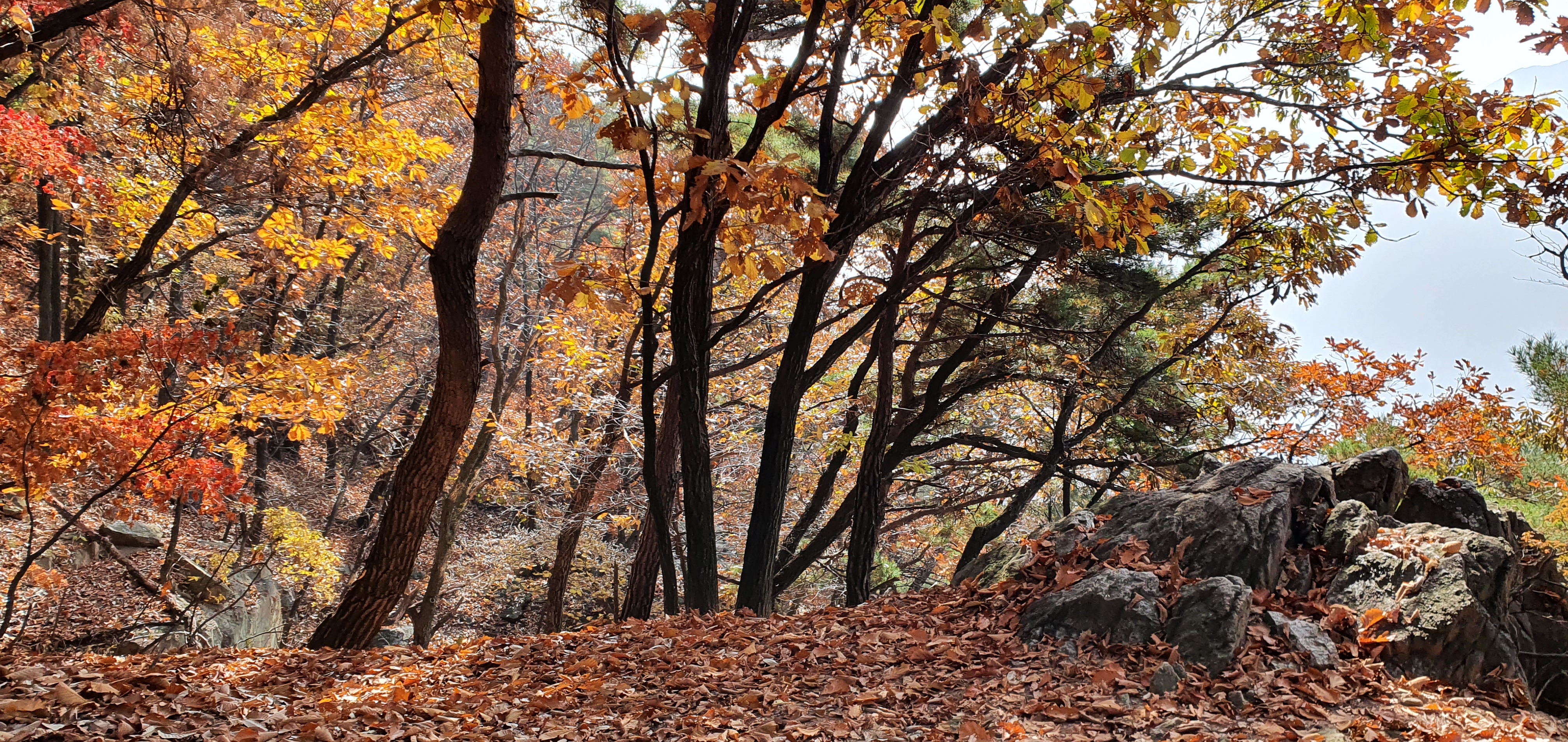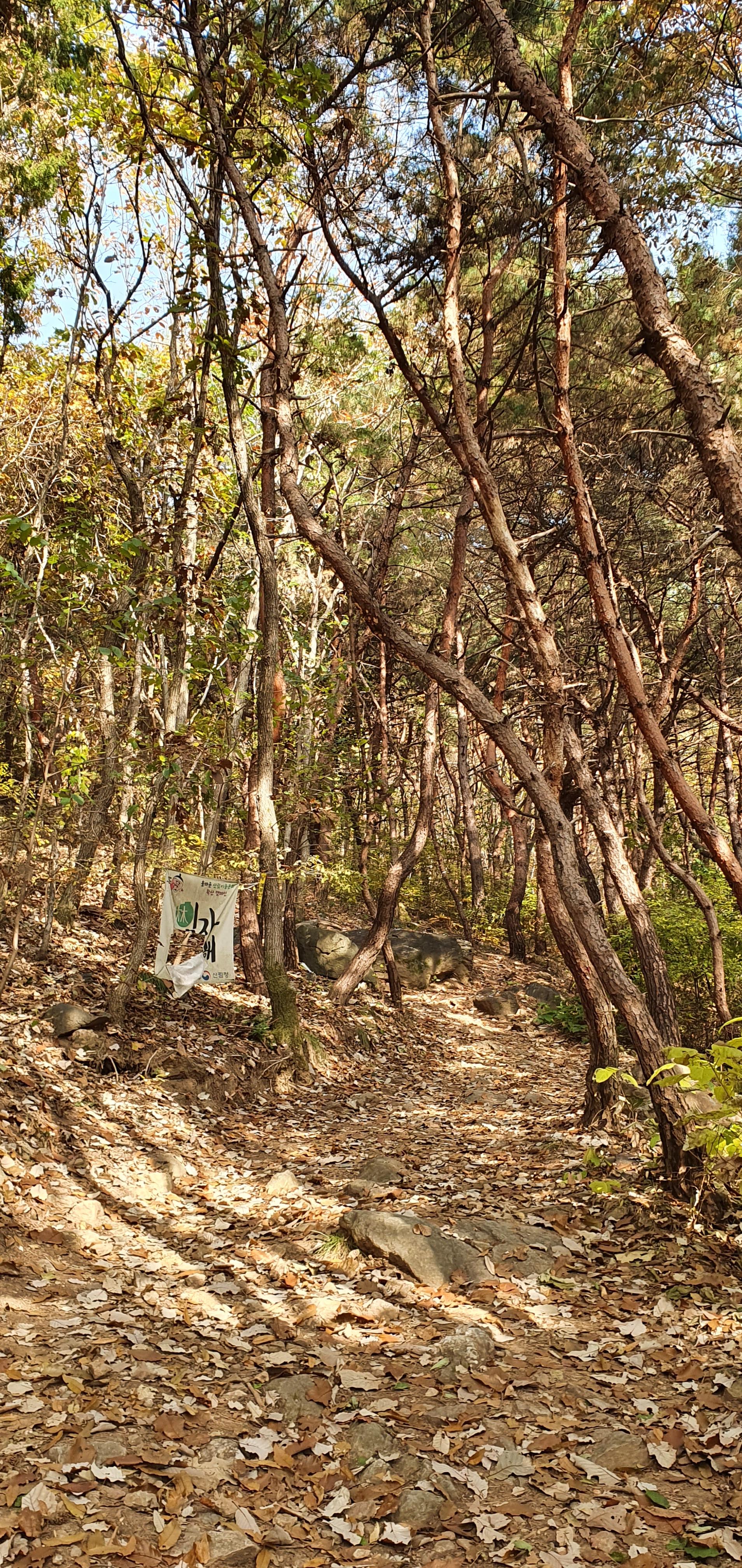 낙엽길과 오르막,내리막등을 지나 하나의 언덕을 오르면 또하나가 나타나기를 수차례, 어느정도 맥이빠질무렵