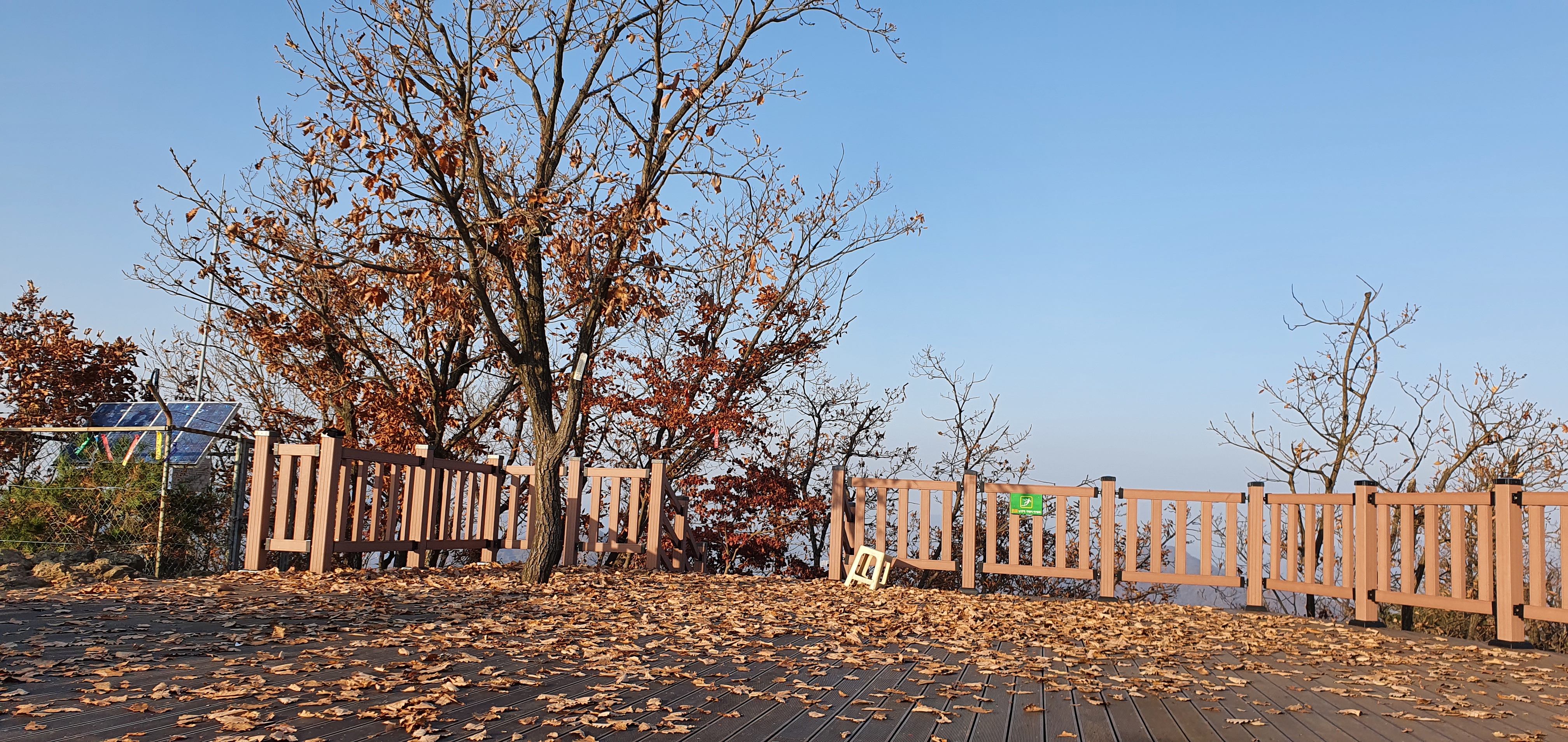 드디어 나무데크가 나타나며 오른 운길산정상.