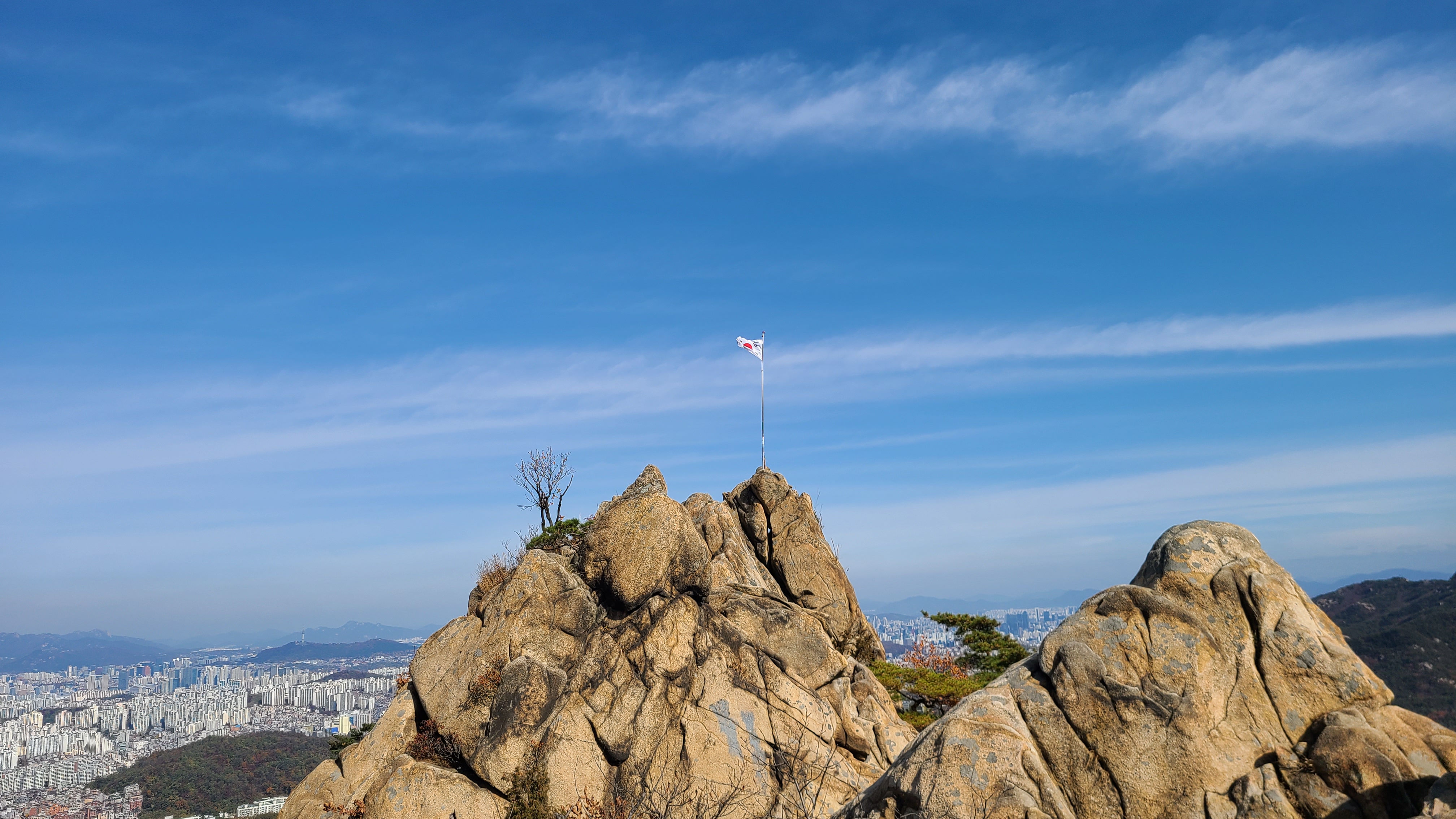 다시 서울대입구의 국기봉에서 잠시 휴식을 취하고는 암벽길을 내리는데 여기저기 낙엽이 덮혀