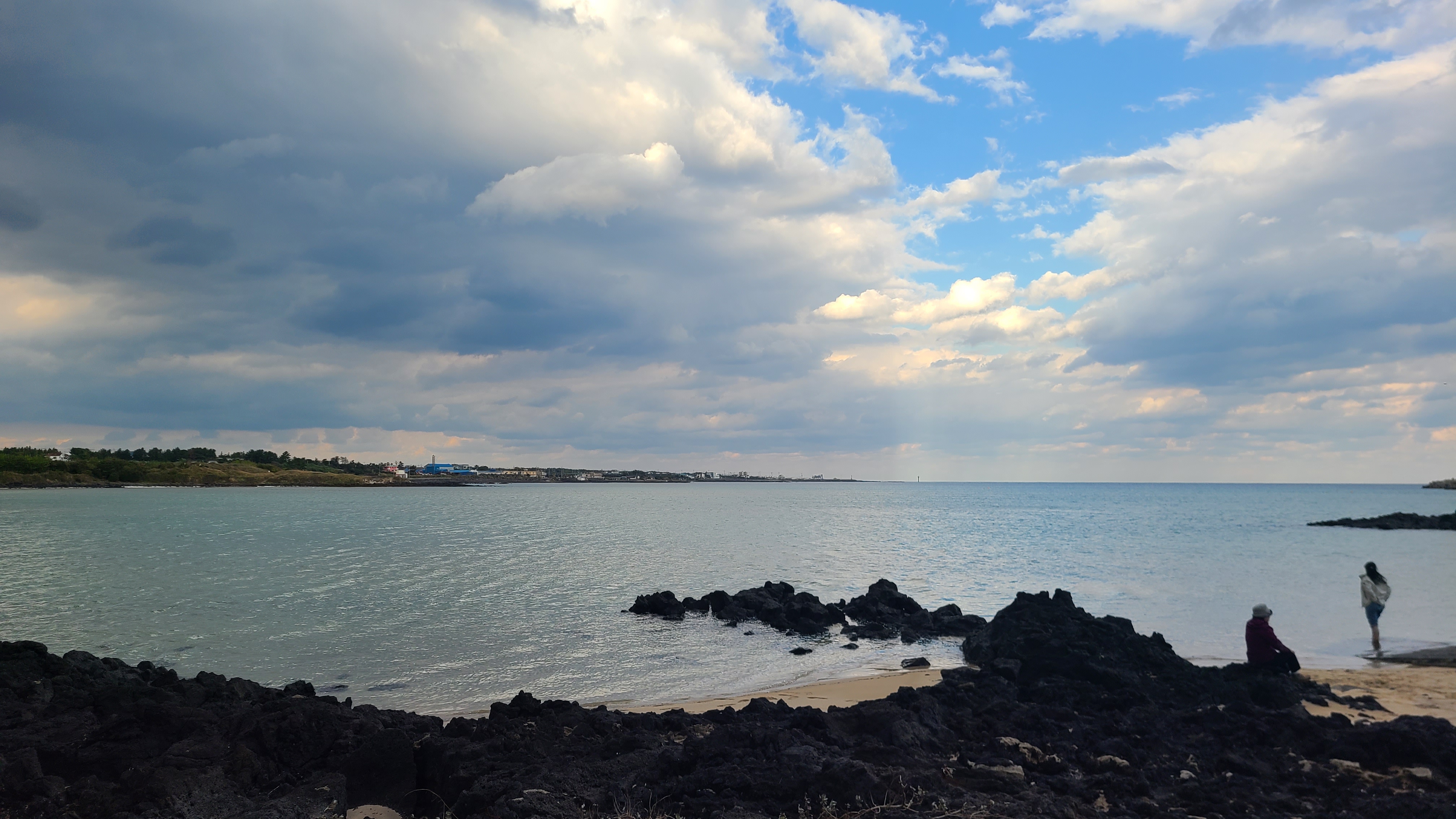 멀리 한라산은 구름속에 정상을 가리우고 흰눈이 일부를 덮고있는 모습이 한폭의 그림같이 바라보인다.