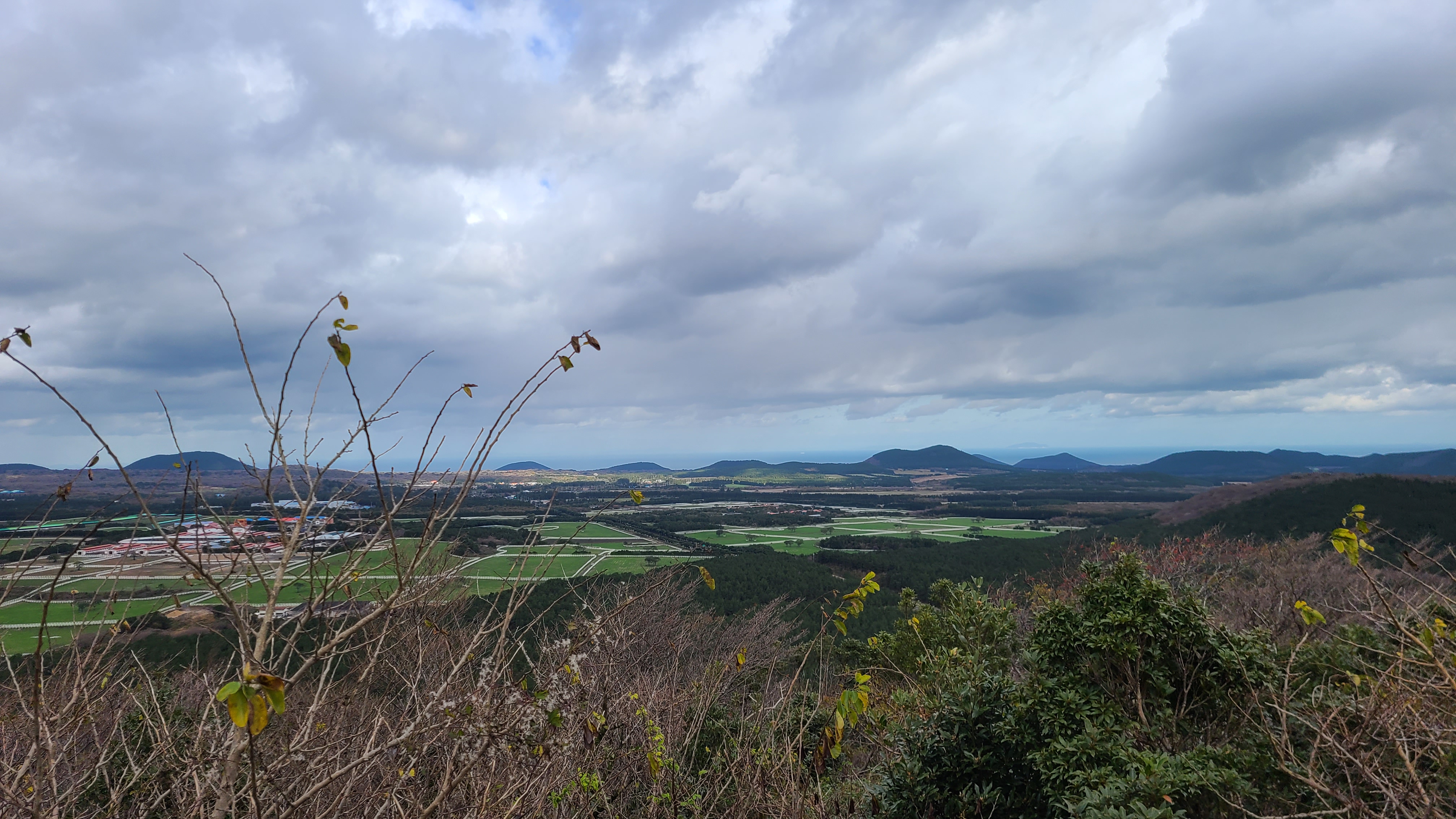 오름의 정상에 서니 광활한 평지와 이곳저곳에 산재한 오름과 목장들의 전경이 가슴을 후련하게 만든다.