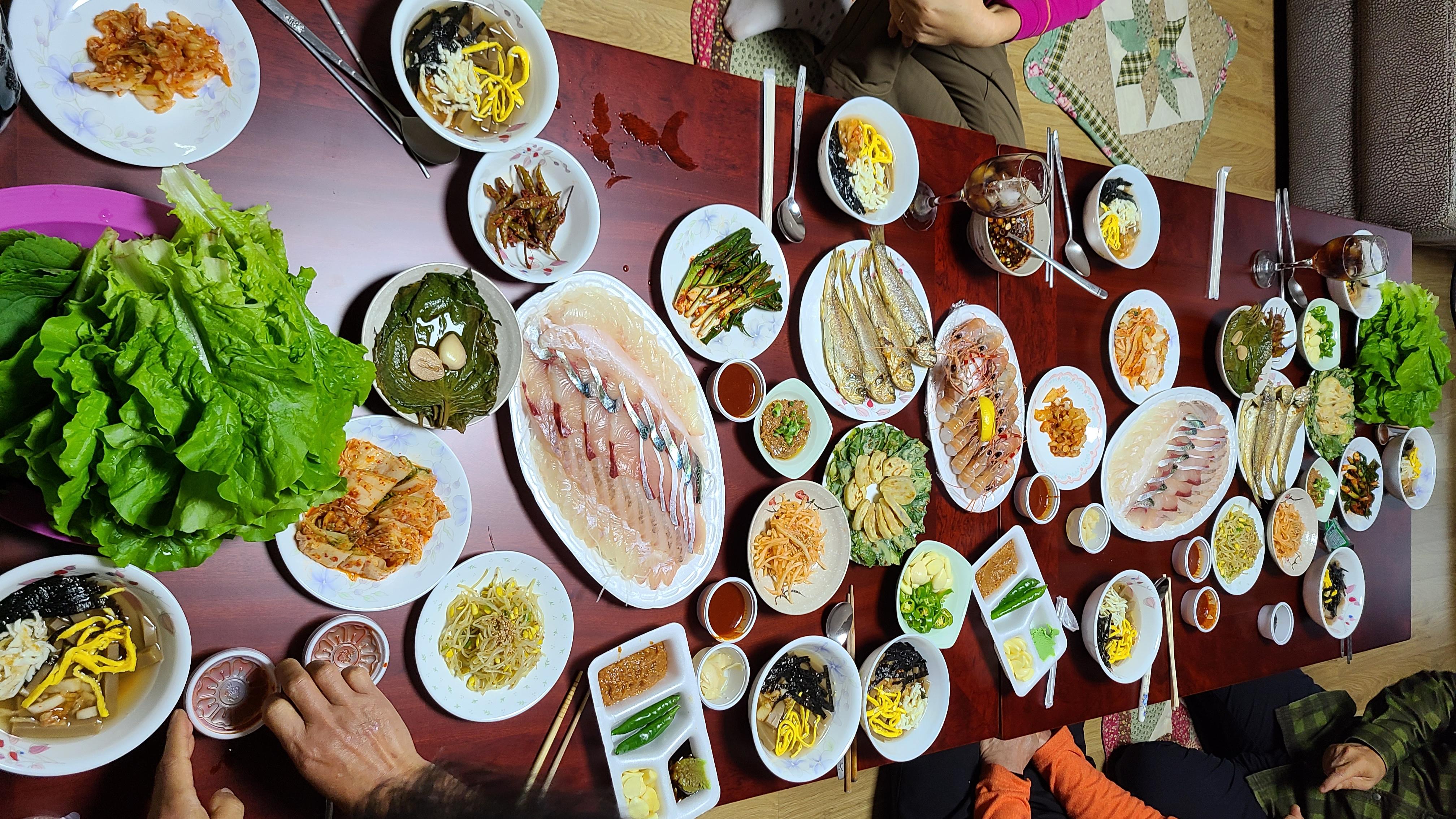 입도한 첫날 작년에 이사한 집들이 선물대신에 형제들이 일정금을 봉투에 주니 오늘 저녁은 회를 내겠다고 하였고