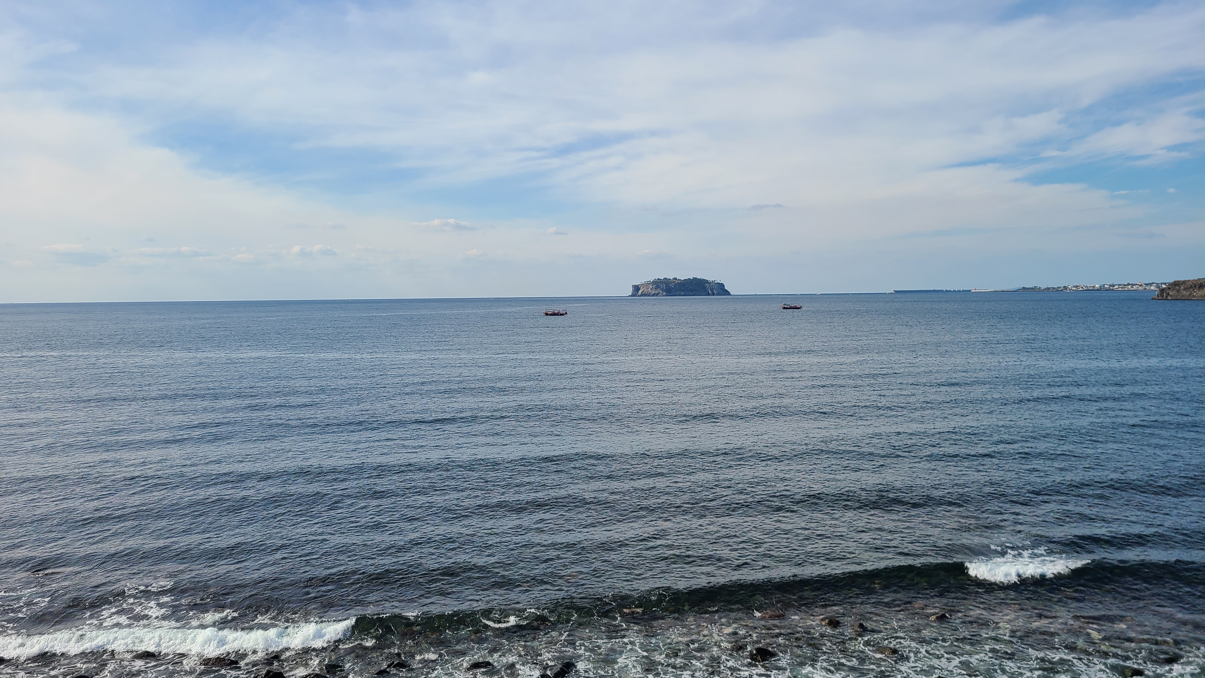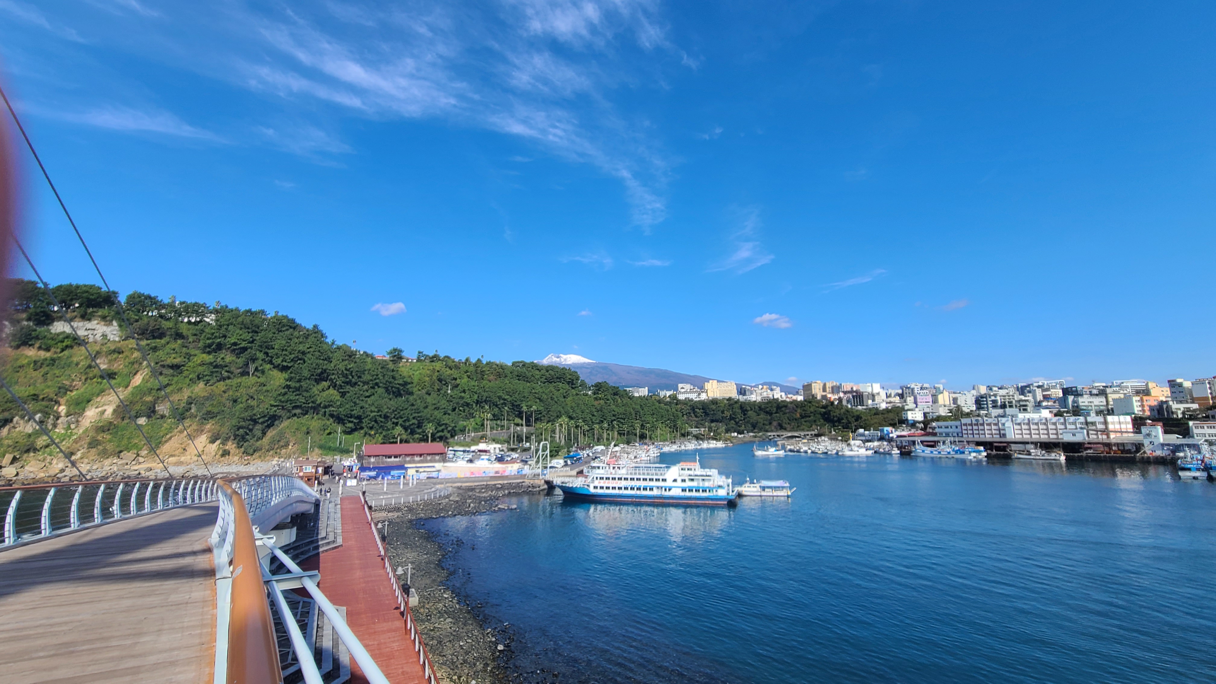 멀리 한라산은 정상부가 하얀눈으로 뒤덮여 멋진 전경을 보여주고있다.