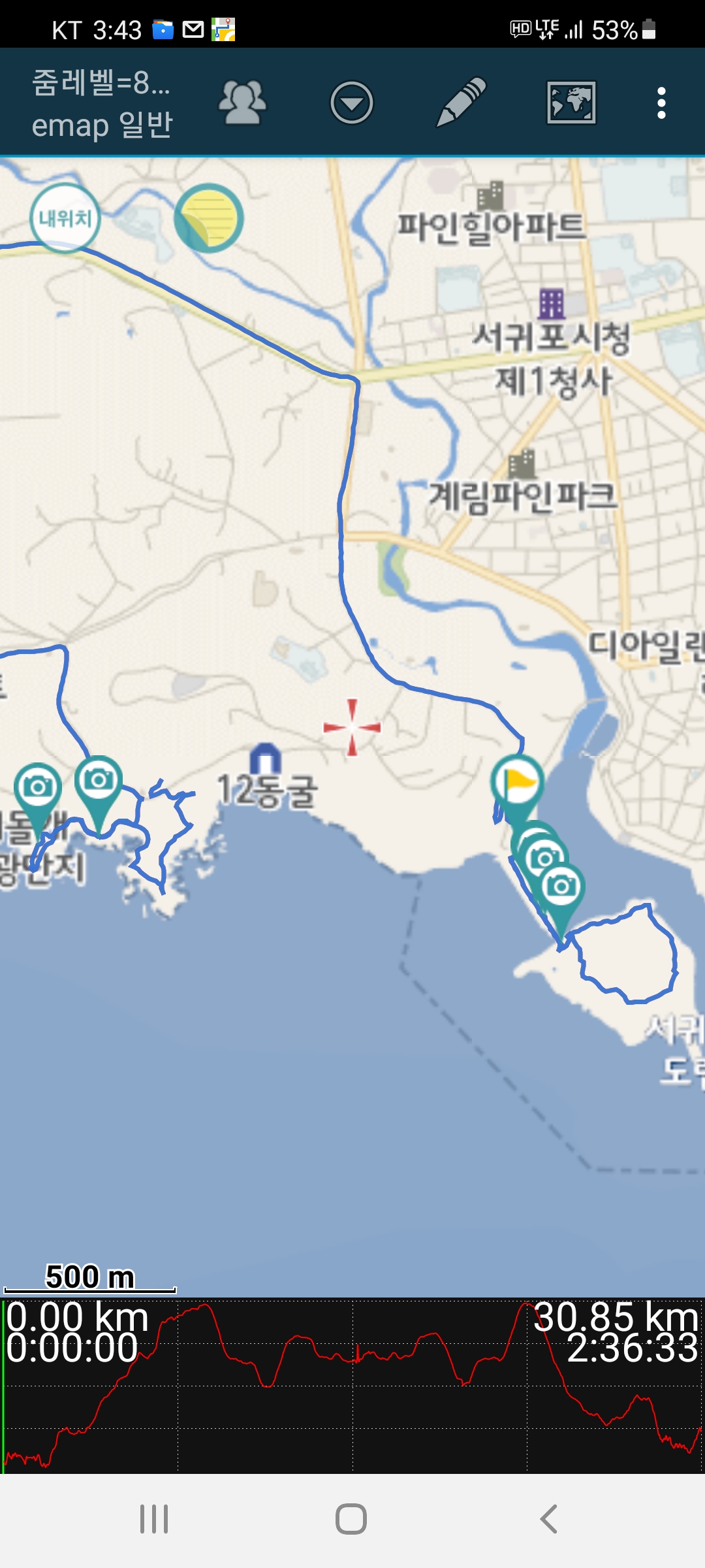 휴식을 취하다가 다시 외돌개를 찾아 경치도 구경하면서 잠시 걸으며 관광을 한다.