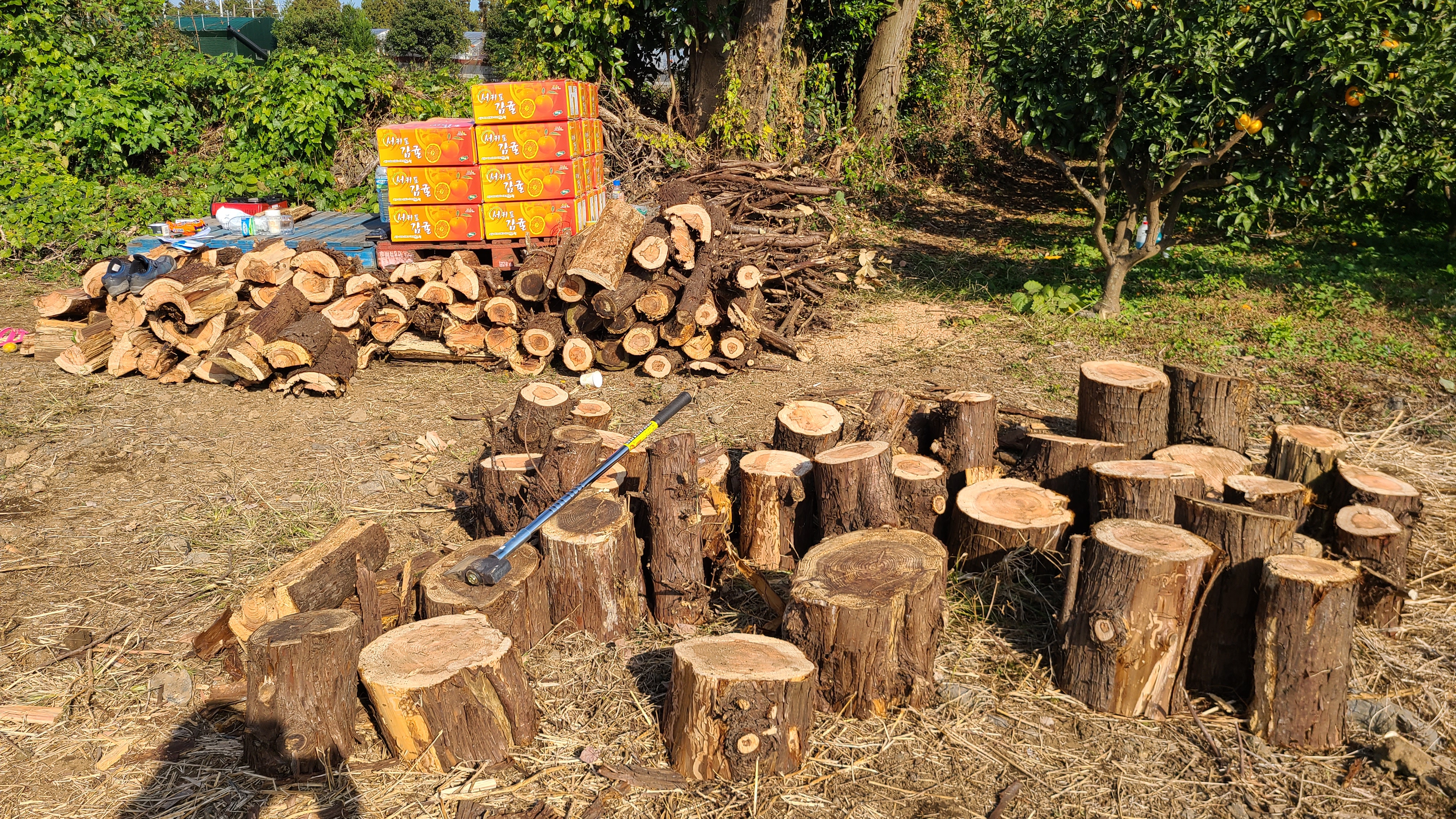 땔감을 조카의 차량으로 실어보내고나니 나무에 익어가는 감귤이 아까워 추가로 따는작업을 한다.