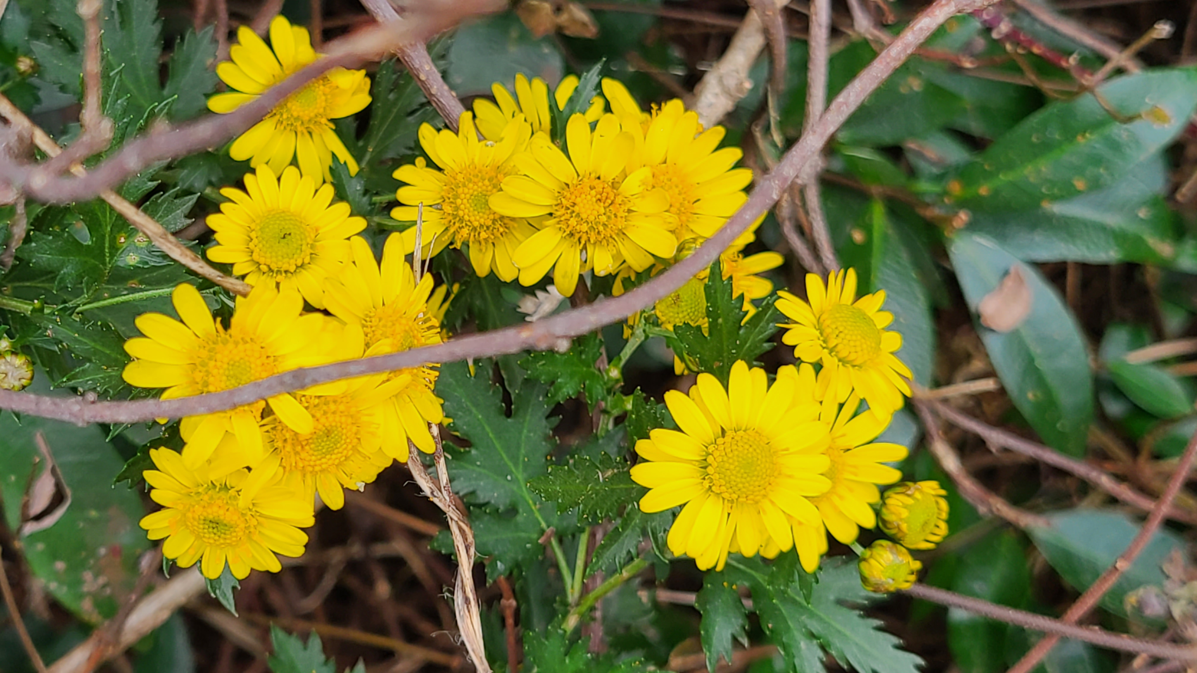 여기저기 노랗게 익어가는 감귤밭을 바라보며 길을 걸어 군산오름에 오른다.