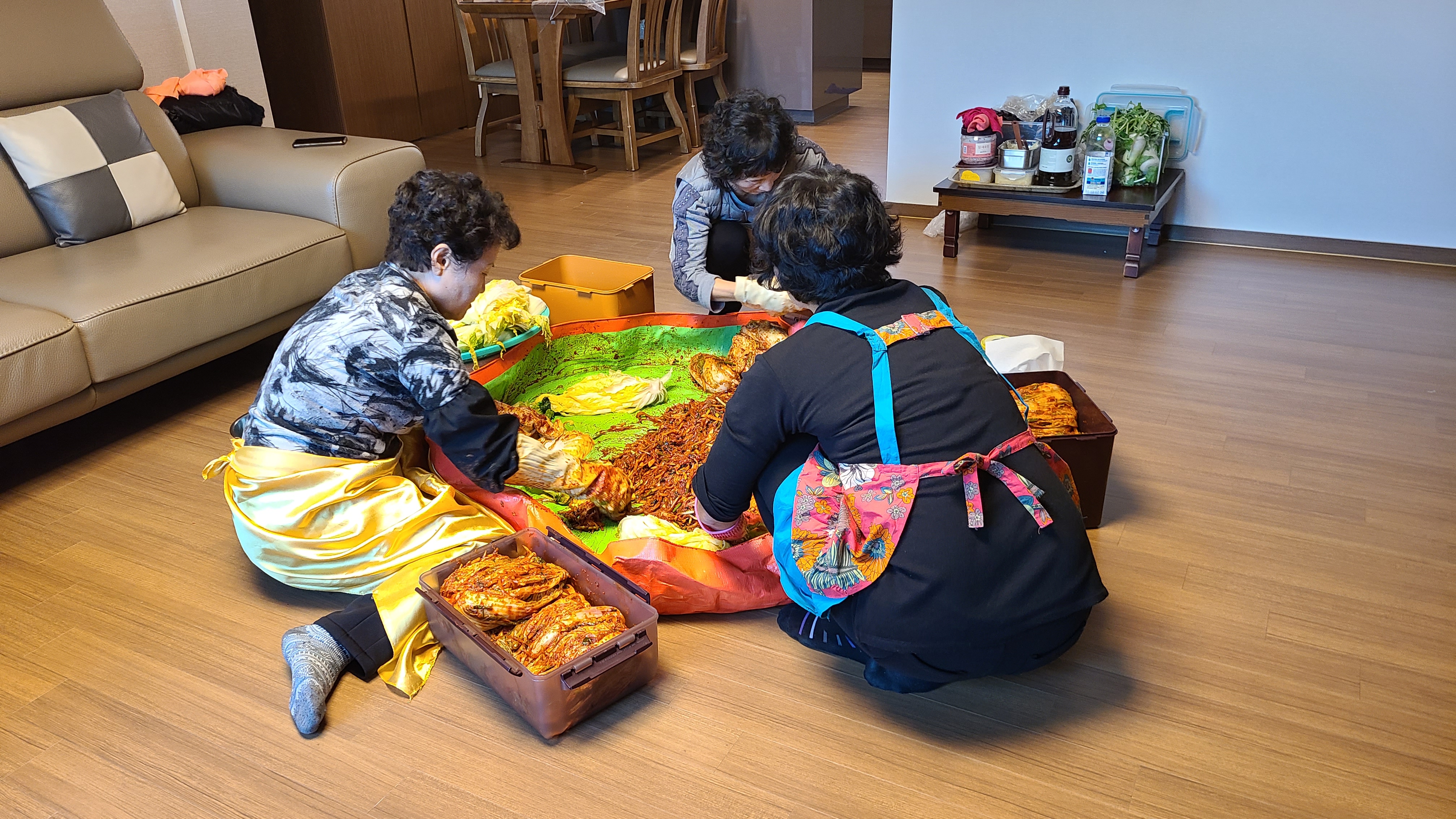 두분의 처형이있으니 속을버무리고 배추속을채워 김치통에 담그는 작업은 일사천리이다.