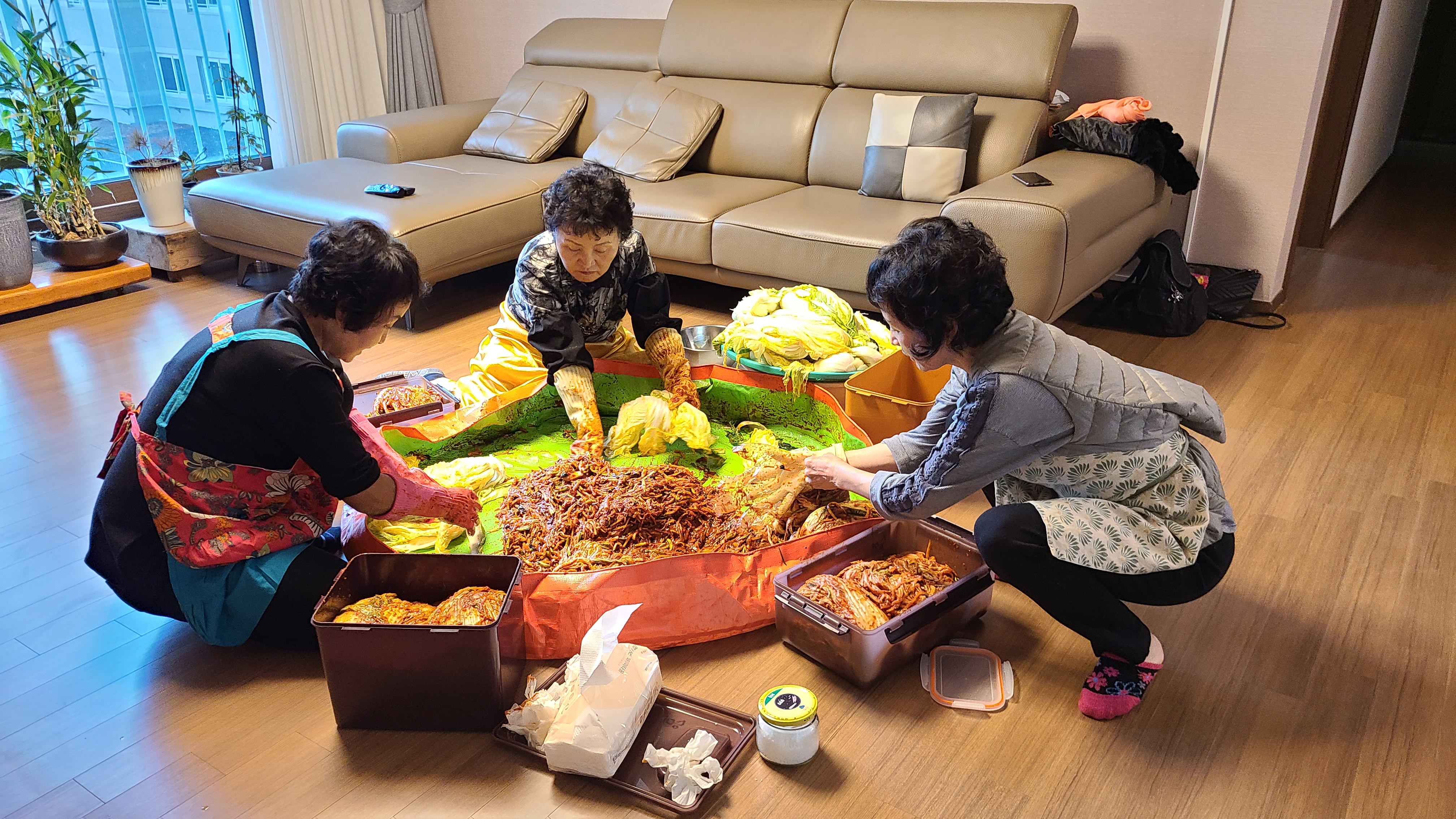 덕분에 절인배추를 인수하여 작업을 개시한다.
