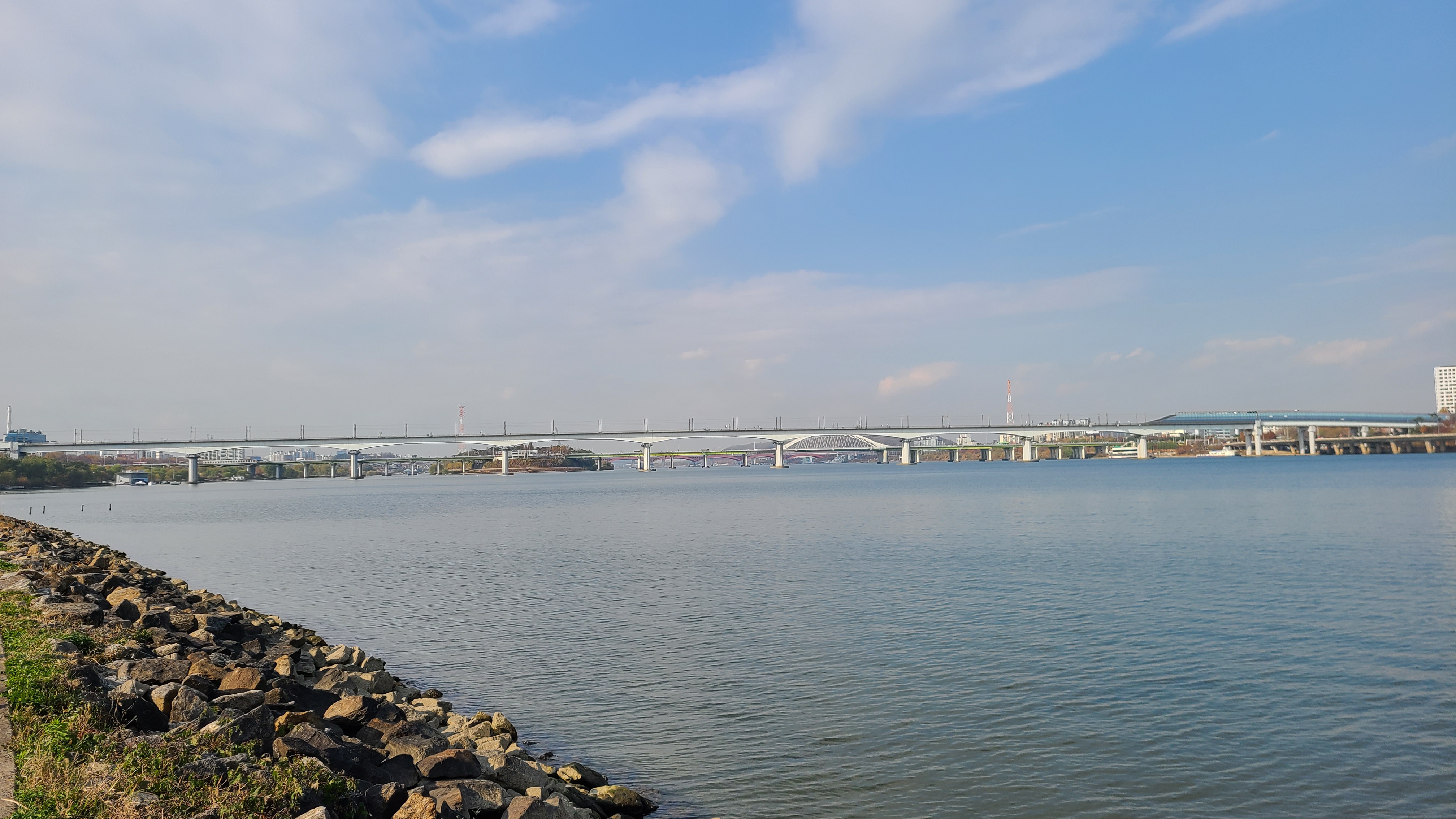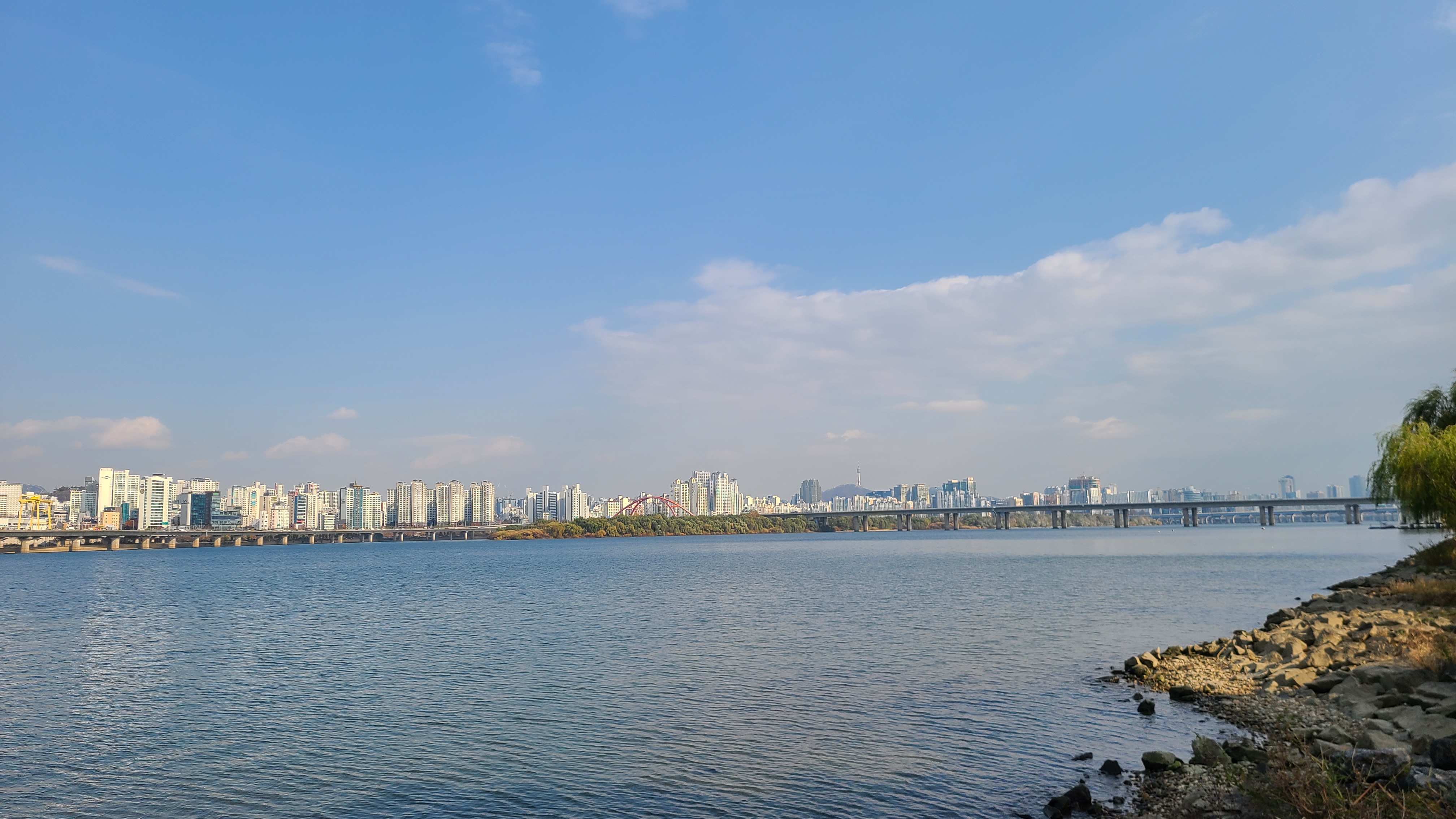 63빌딩을 돌아 한강으로 나서니 조금 바람이 불지만 강폭이 넓고 터진 곳이라 그러하고 걸을만하다.