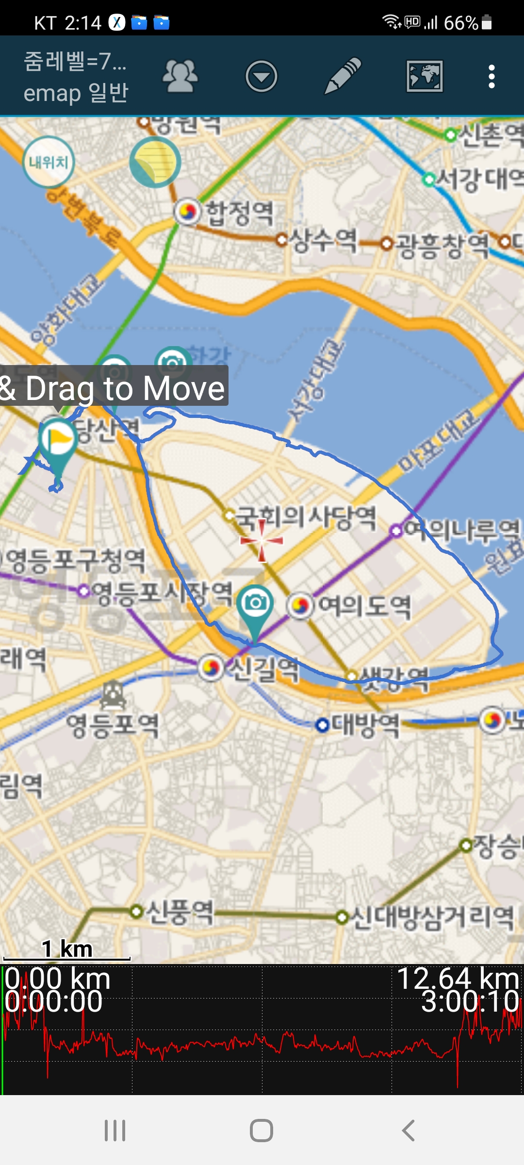 걸음을 서둘러 당산역으로 도착하니 2시간40분이 걸리고 12.64km를 걸었다.