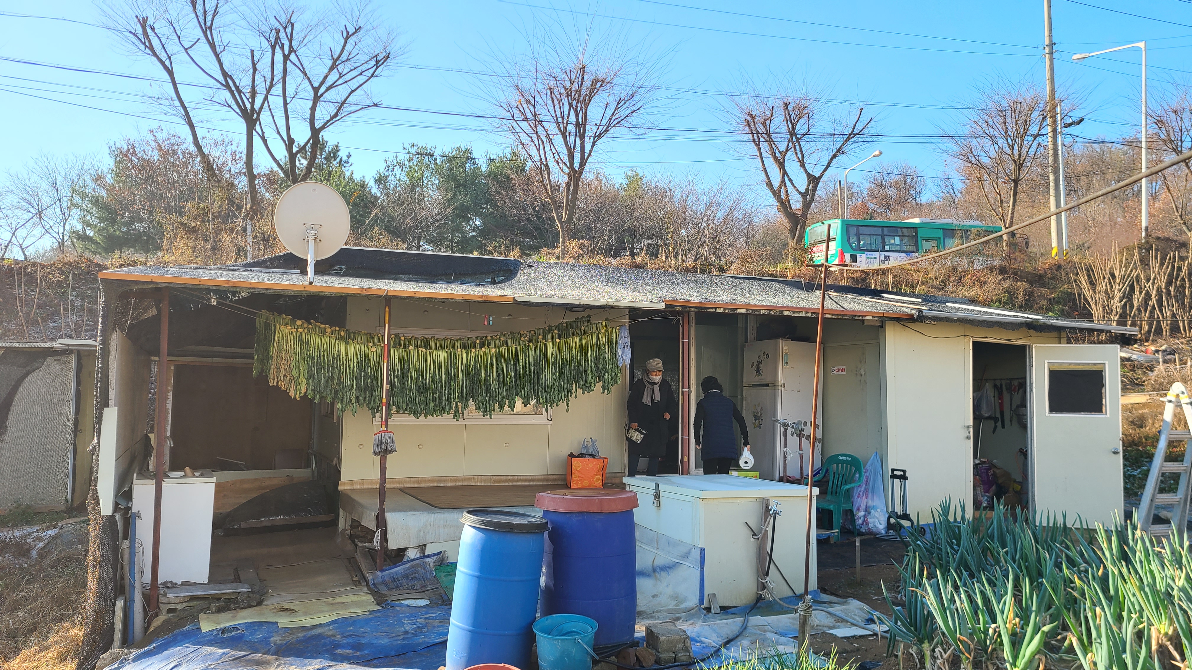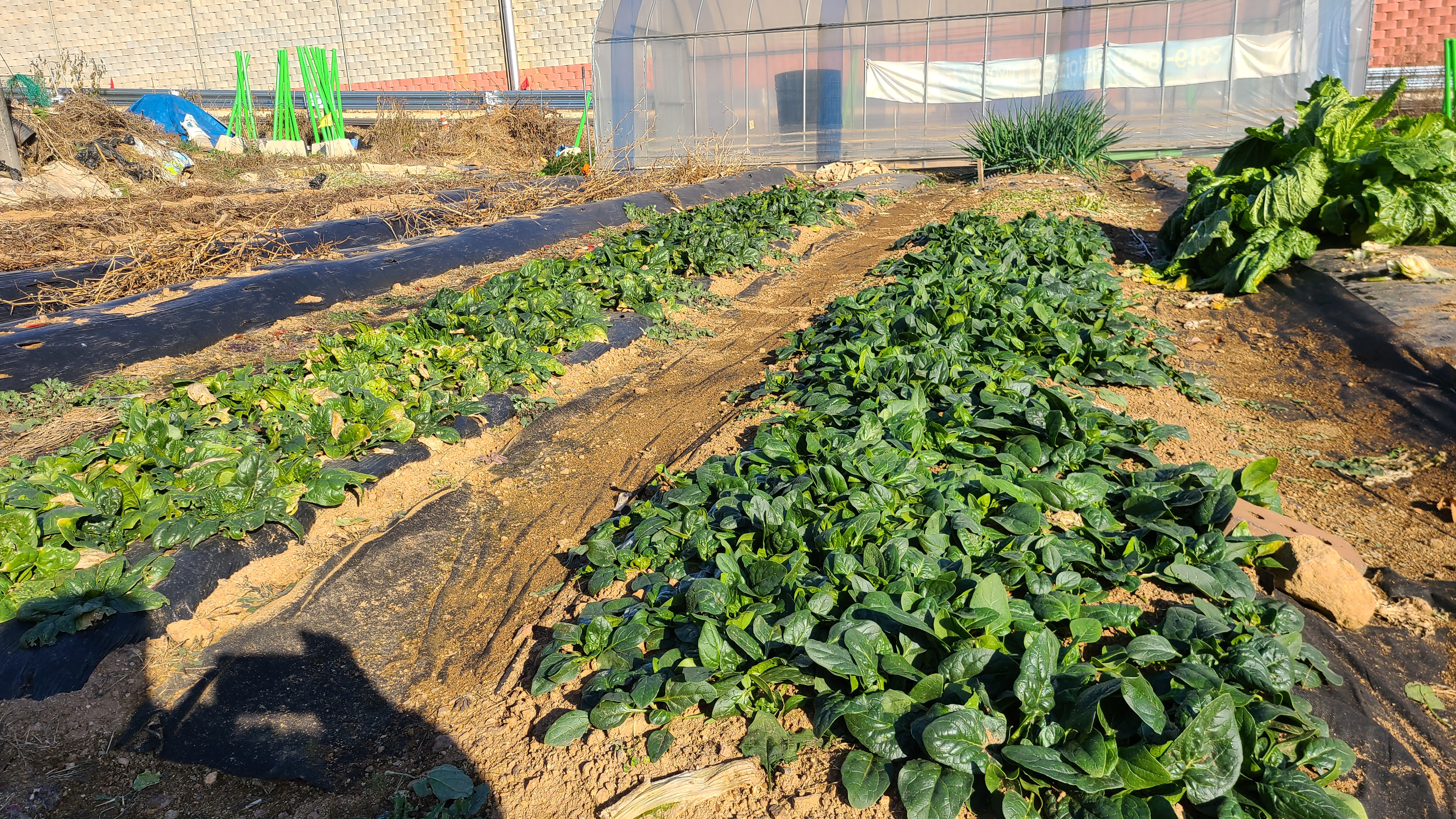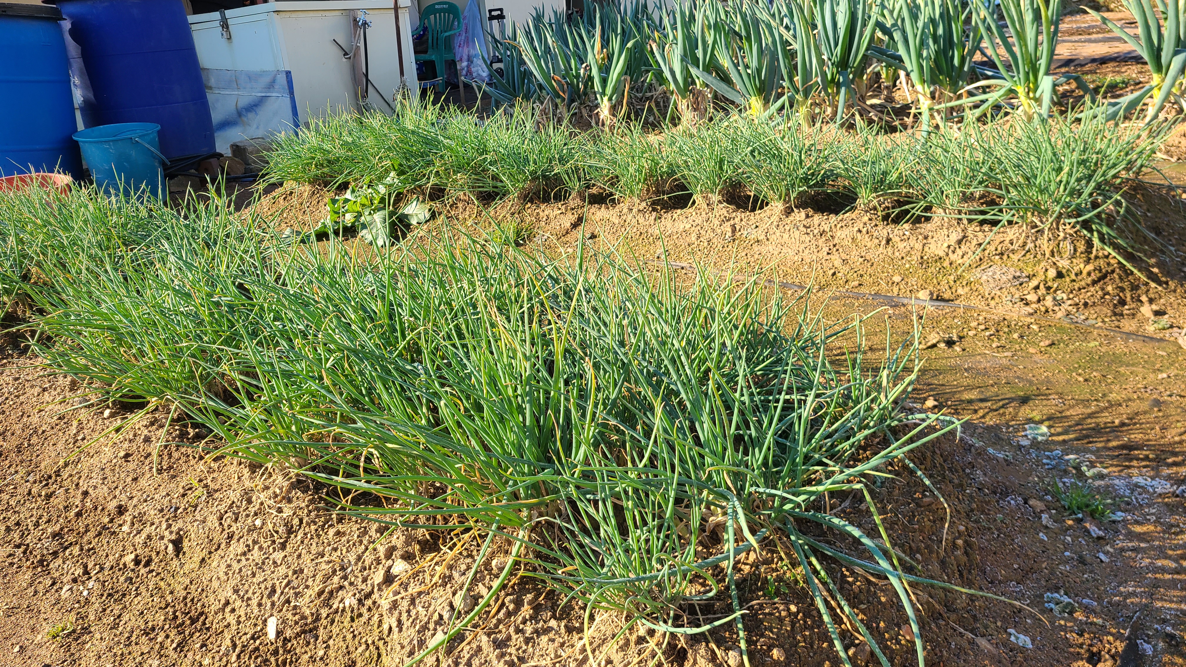 농장에는 대파와 시금치와 파등이 푸른빛을 띄고 자리를 지키고있다.