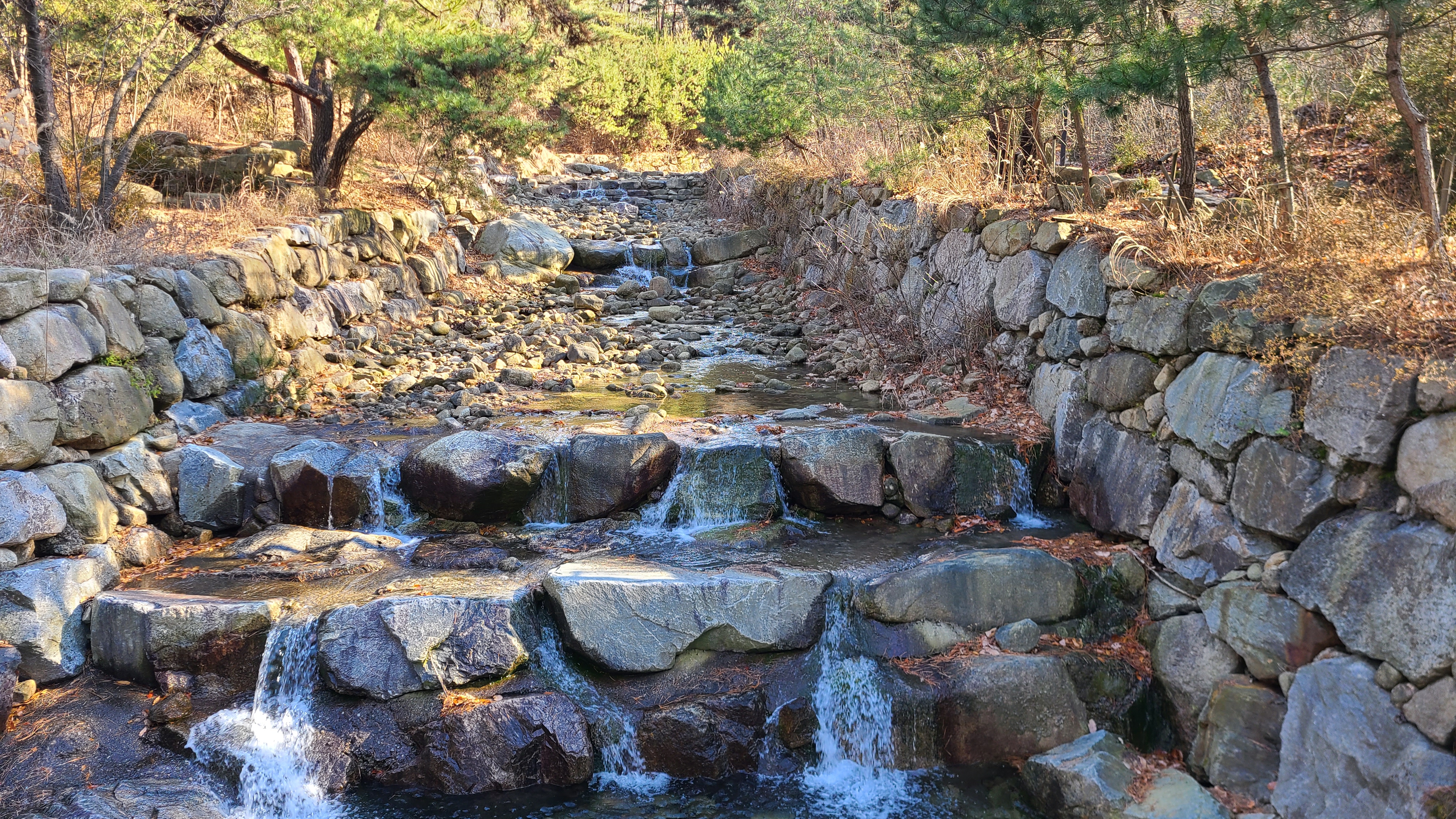 낙엽은 떨어지고 내린비로 여름의 개울처럼 물이 콸콸 흘러내리니 바싹 말랐던 여름과는 대조적이다.