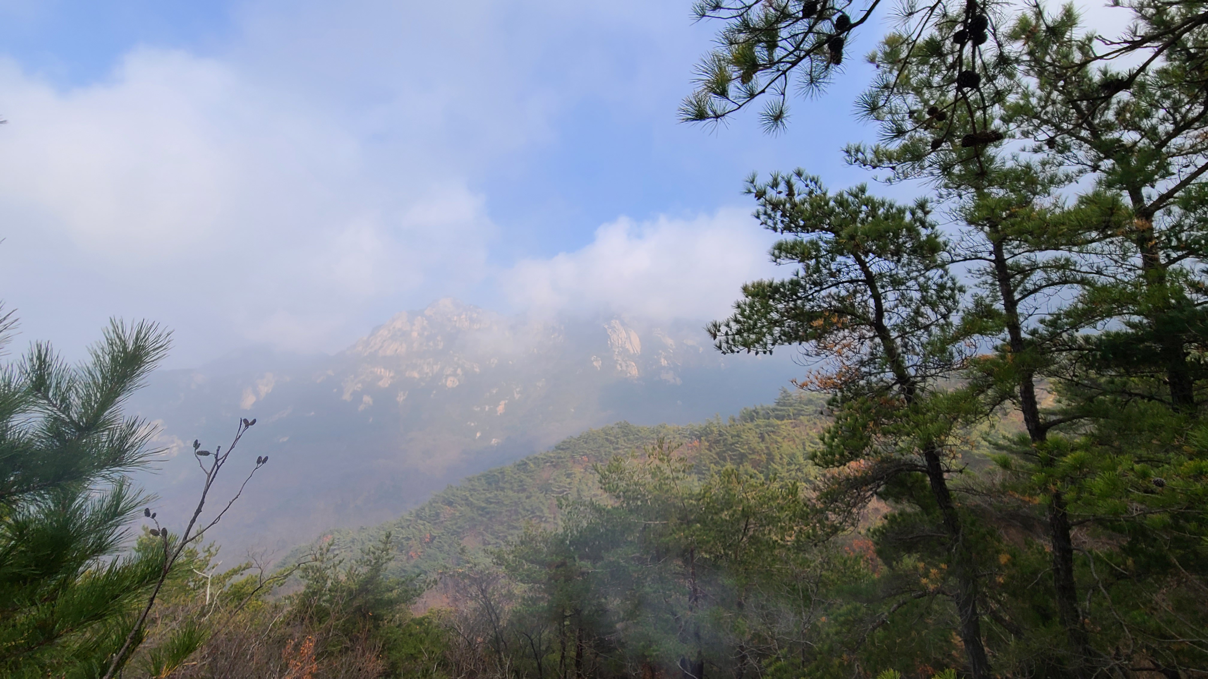 잠시 후 태양이 비치니 그래도 조금 나아져 조금의 시계가 확보된다.
