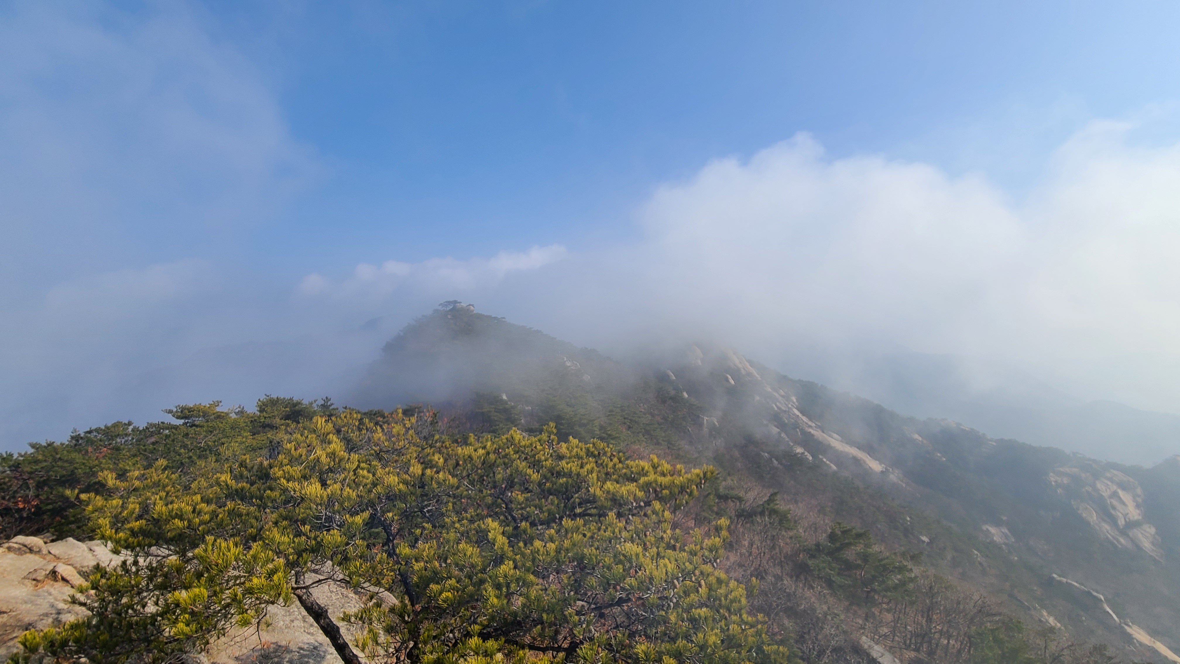 잠시 휴식후 다시 고지를 올라보니 아무것도 보이지 않는다.