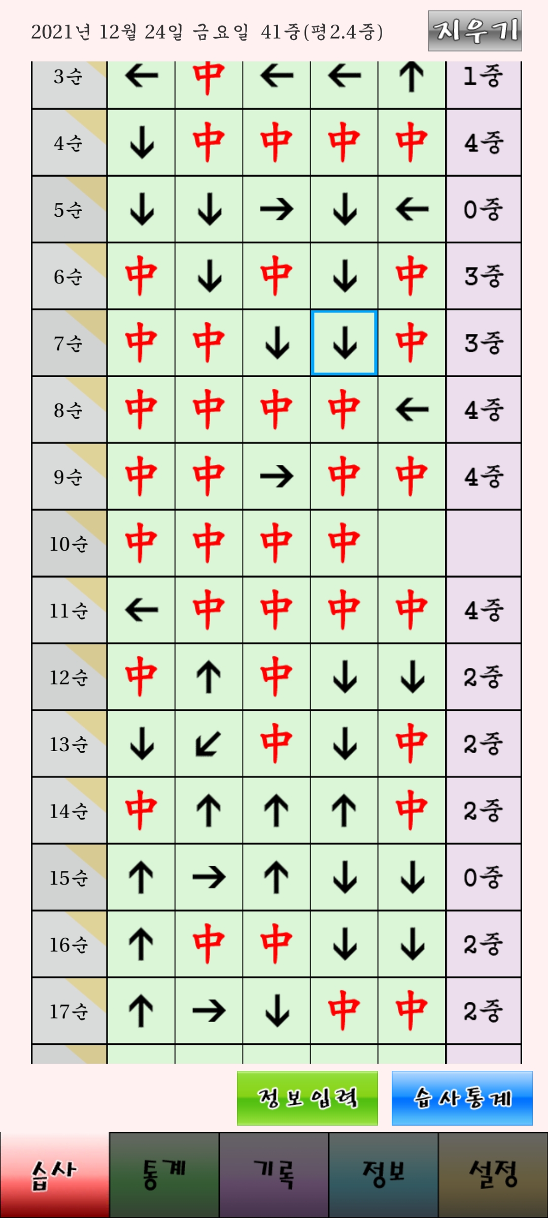 그렇게 여덟순을 내어보았더니 어느정도 의도한데로 4발관중 2번,3발관중 2번,2발관중 2번,1발관중 1번과