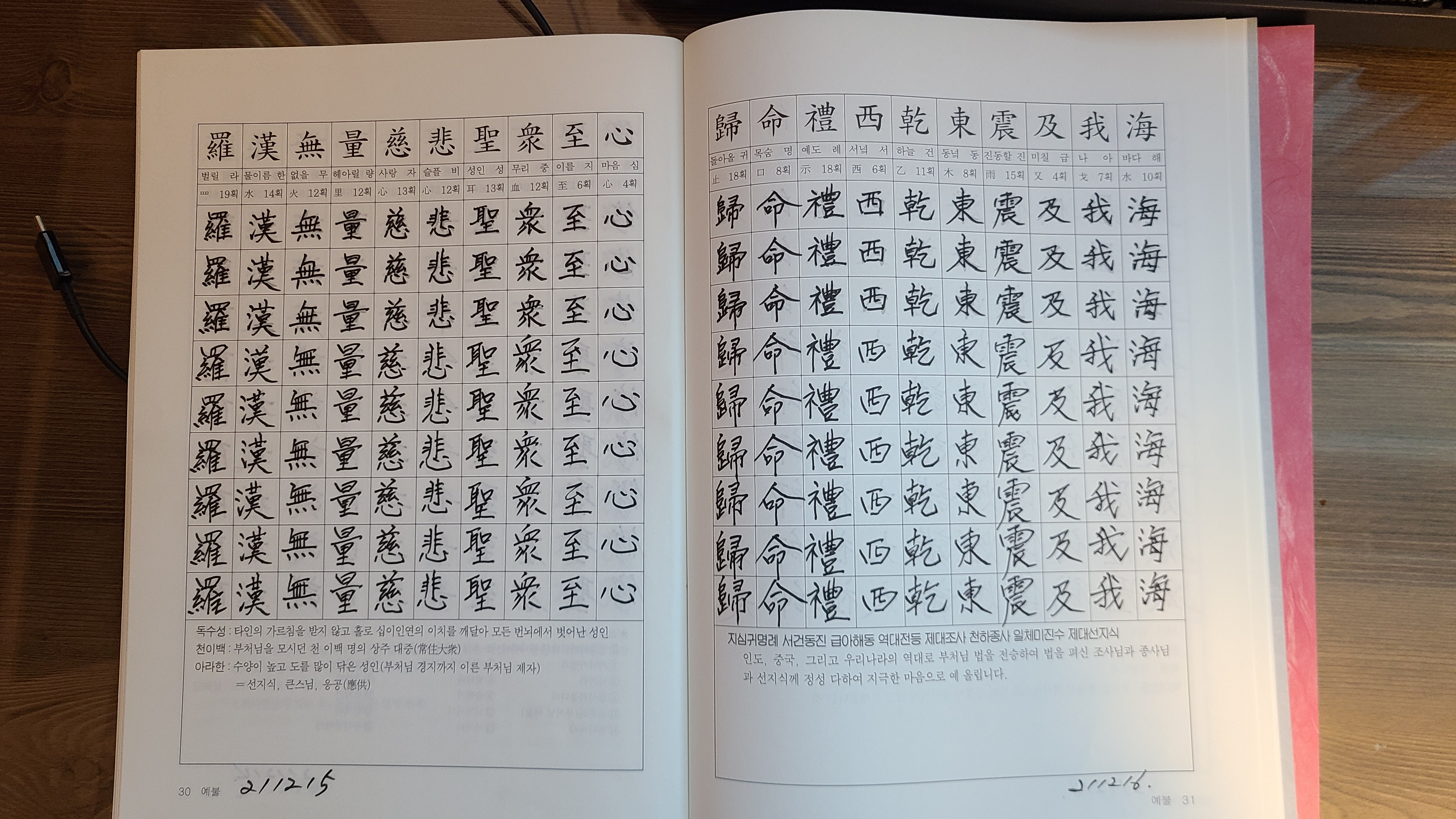 11월19일 시작한 예불문 사경을 한달이 좀 12월25일 마무리한다.
