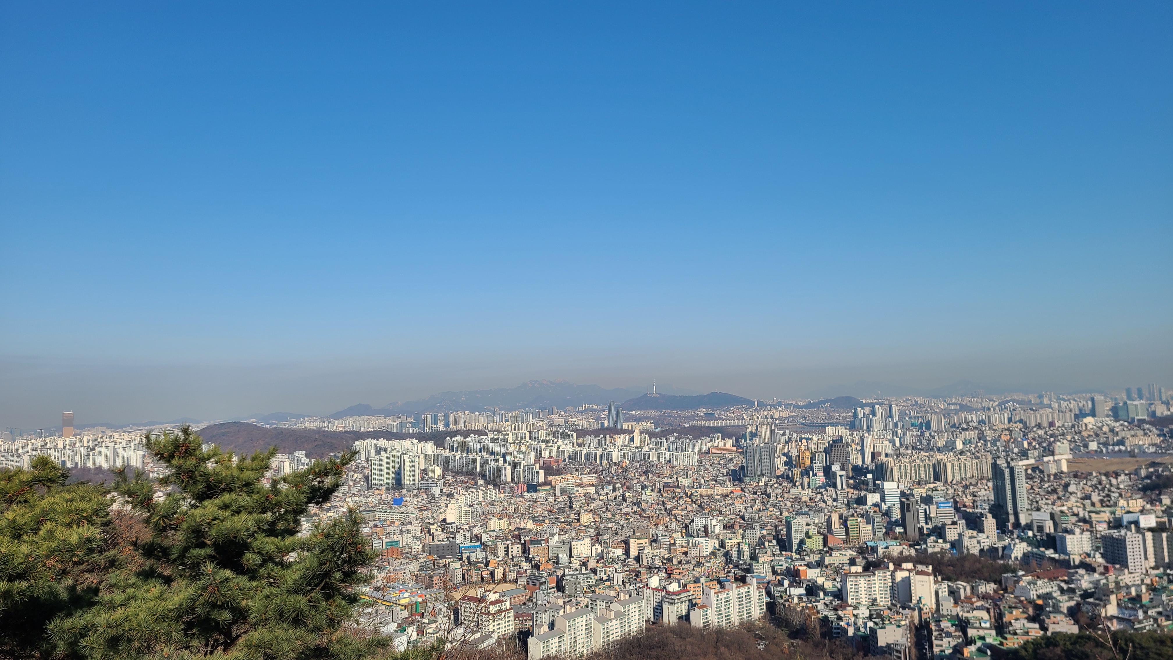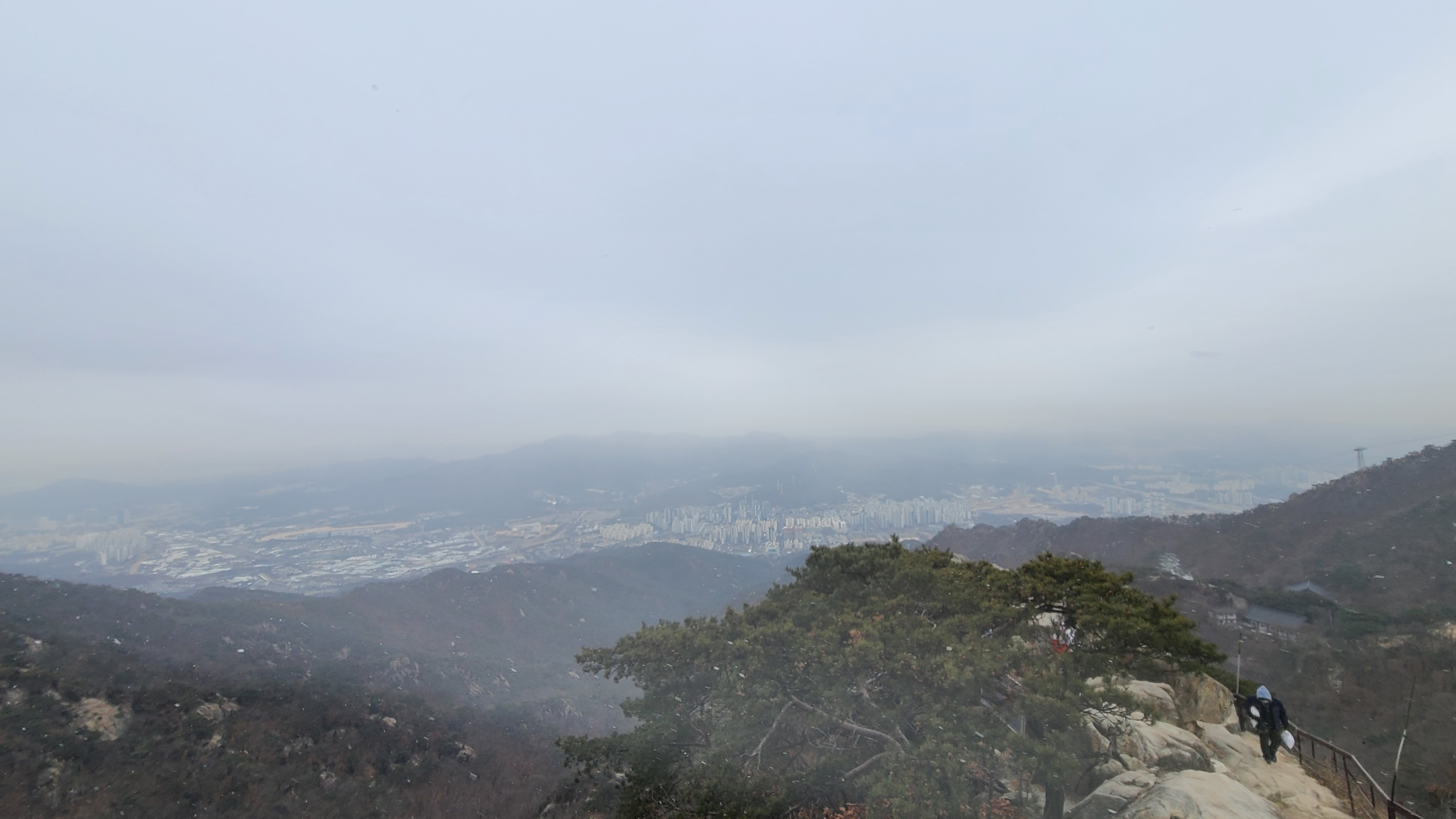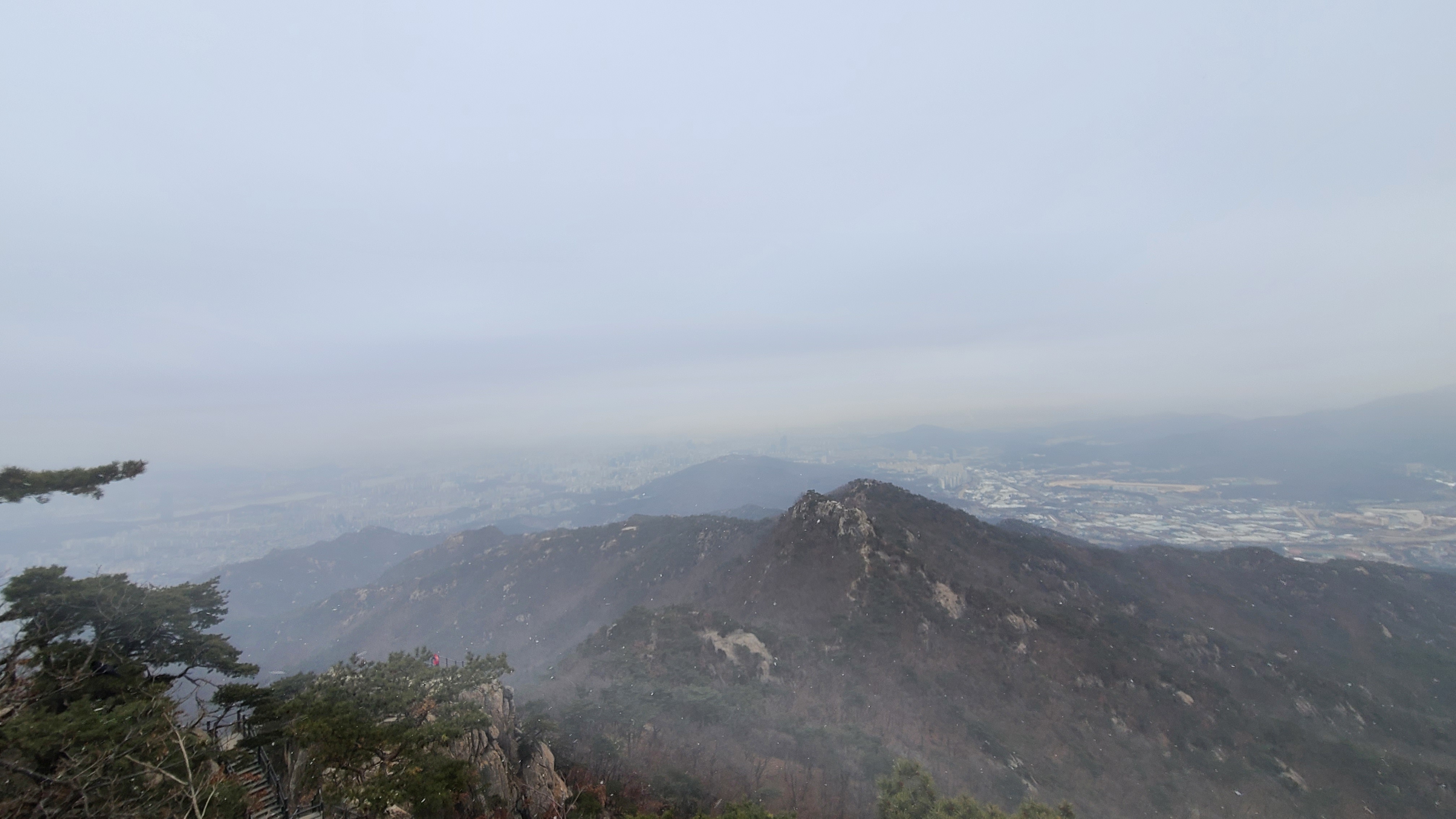 국기봉을 오르니 강남과 강북일대 및 북한산전경이 뚜렷하게 보이는 쾌청한 날씨이다.