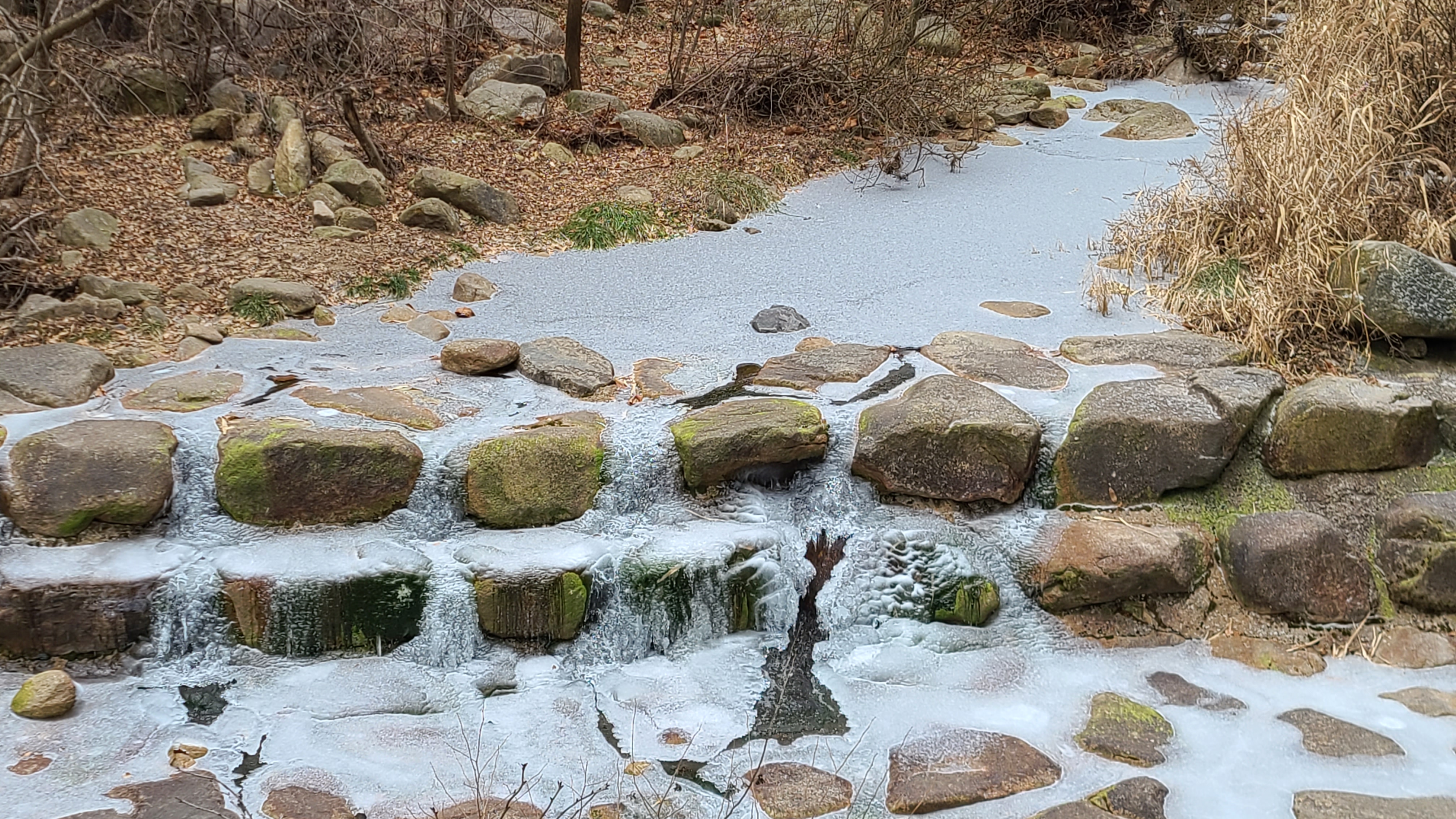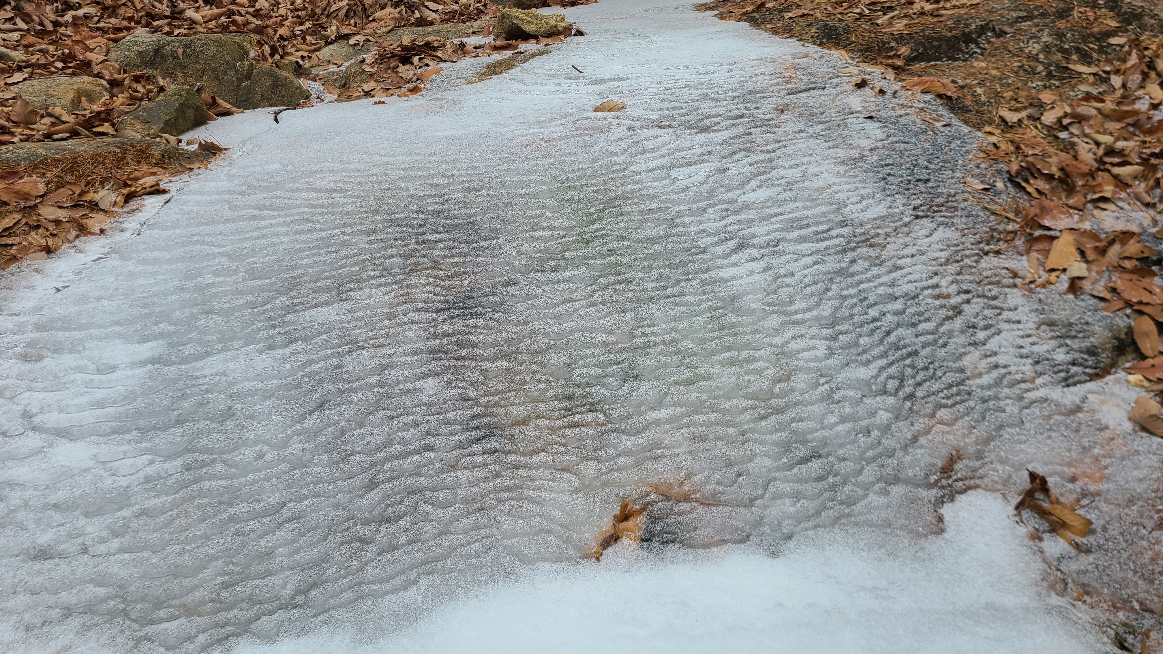 잔설이 바위에 쌓여 살작 얼은 것 같기도하고 부분적으로 위험할 정도이다.