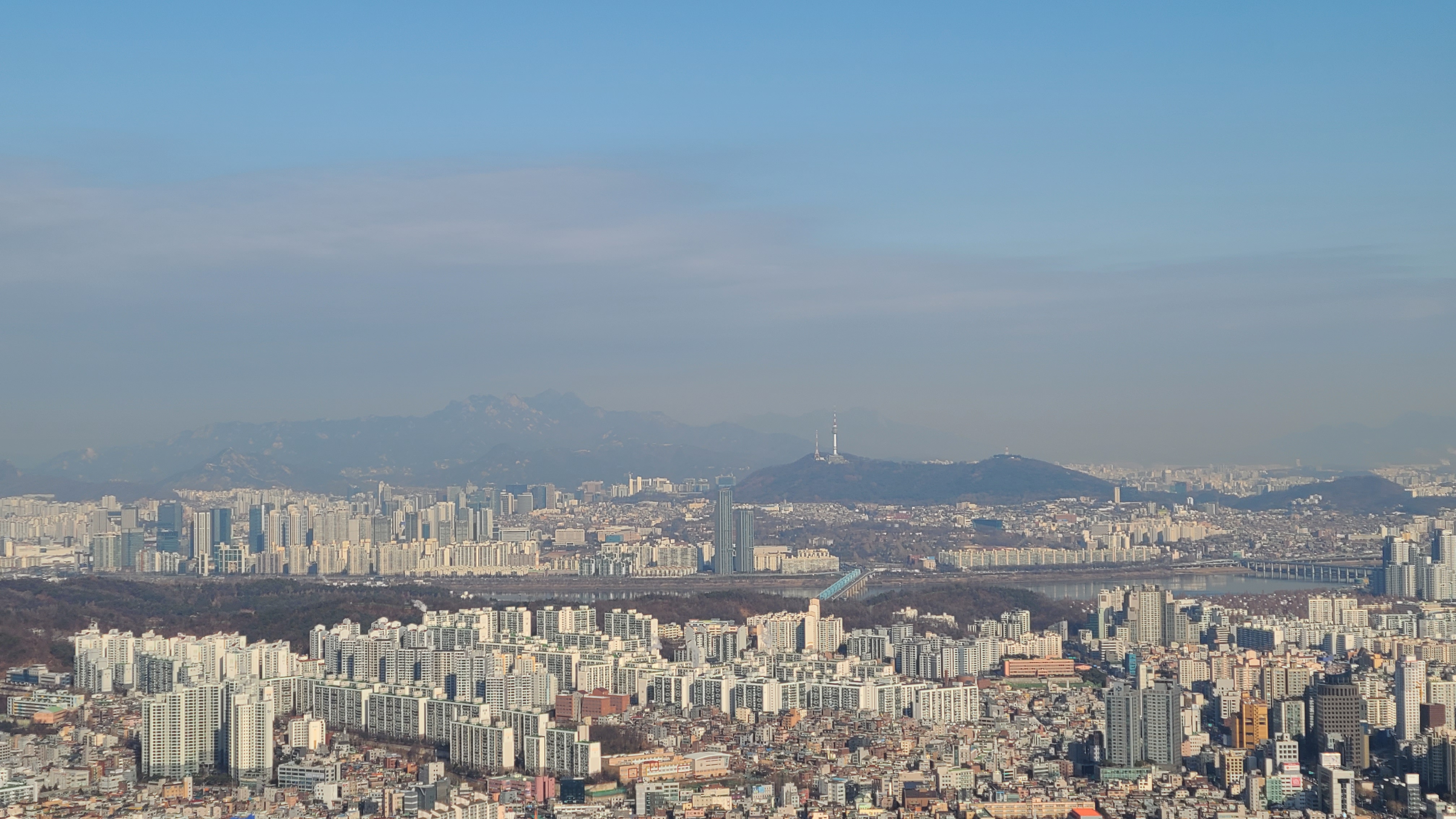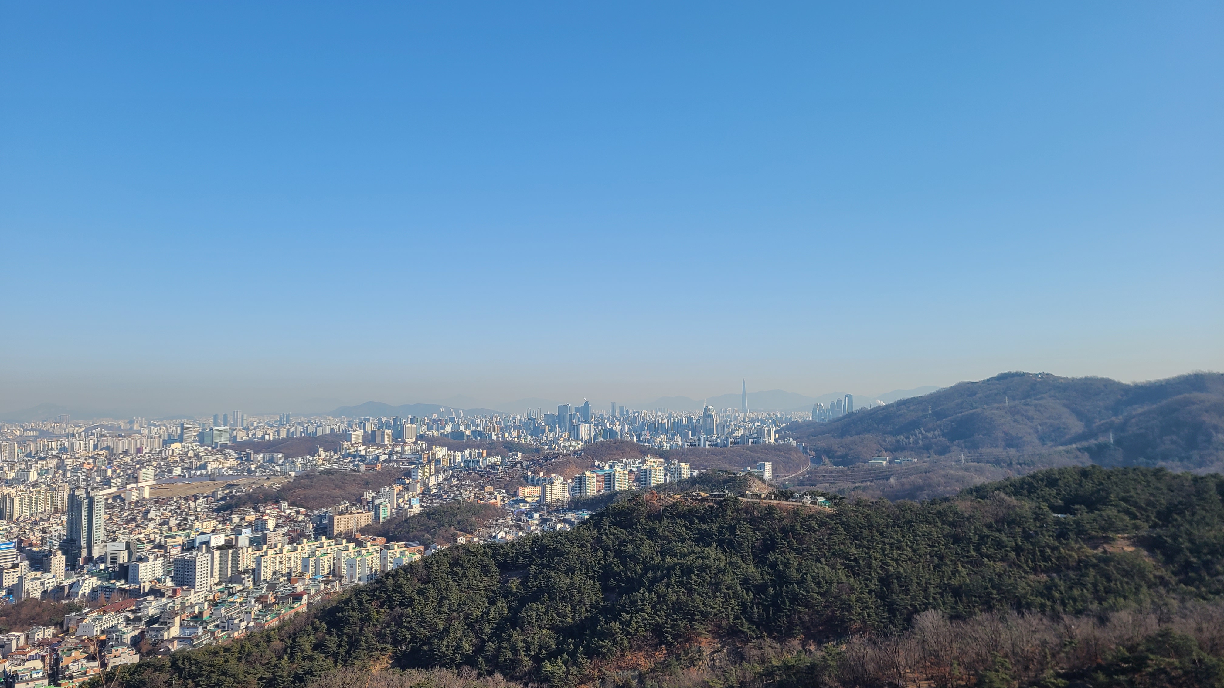 국기봉을 오르니 강남과 강북일대 및 북한산전경이 뚜렷하게 보이는 쾌청한 날씨이다.