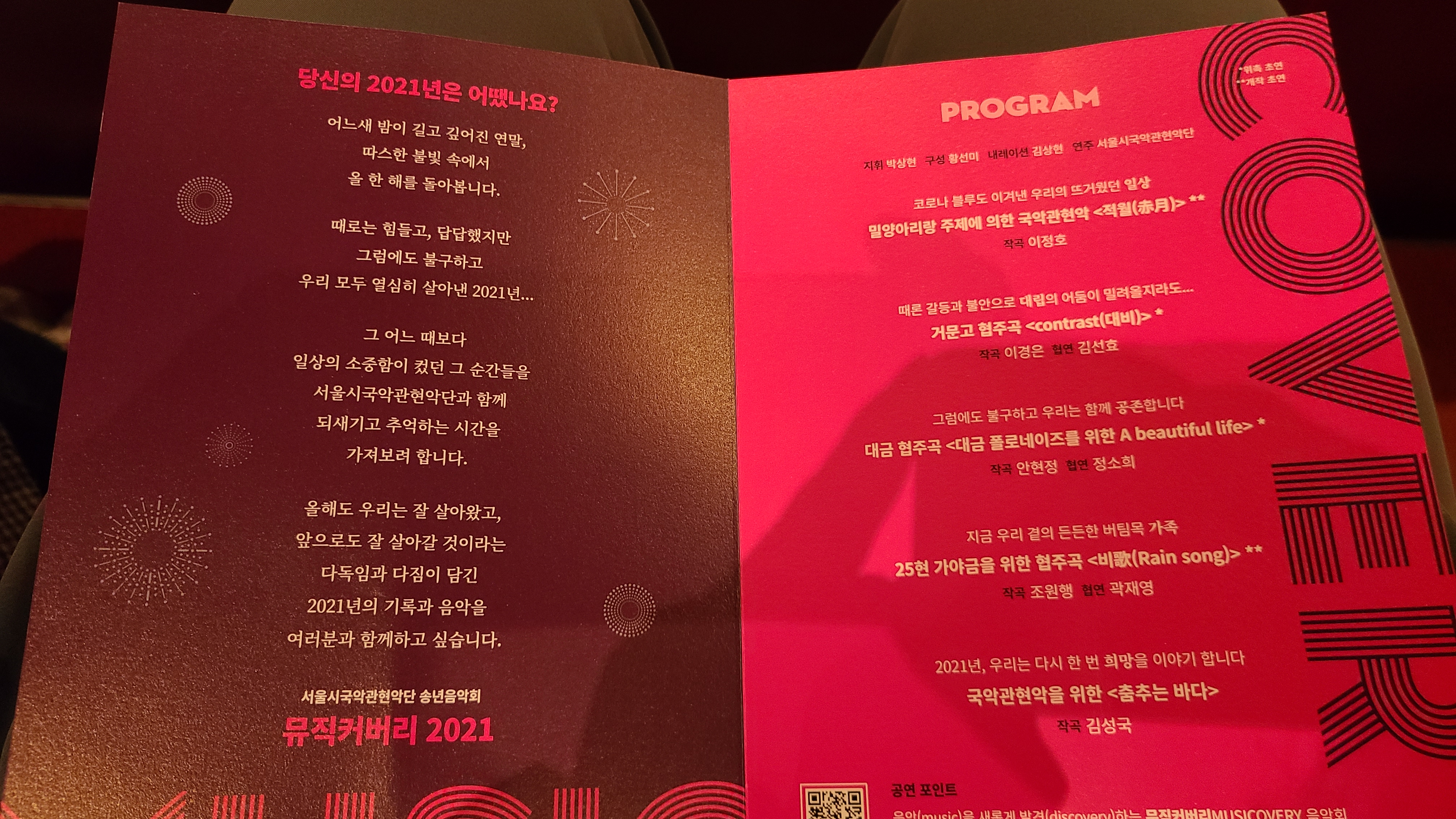 송년특집 서울시 국악관현악단의 세종문화회관 M씨어터 공연을 월초에 예약하고 오늘이 그 공연일이다.