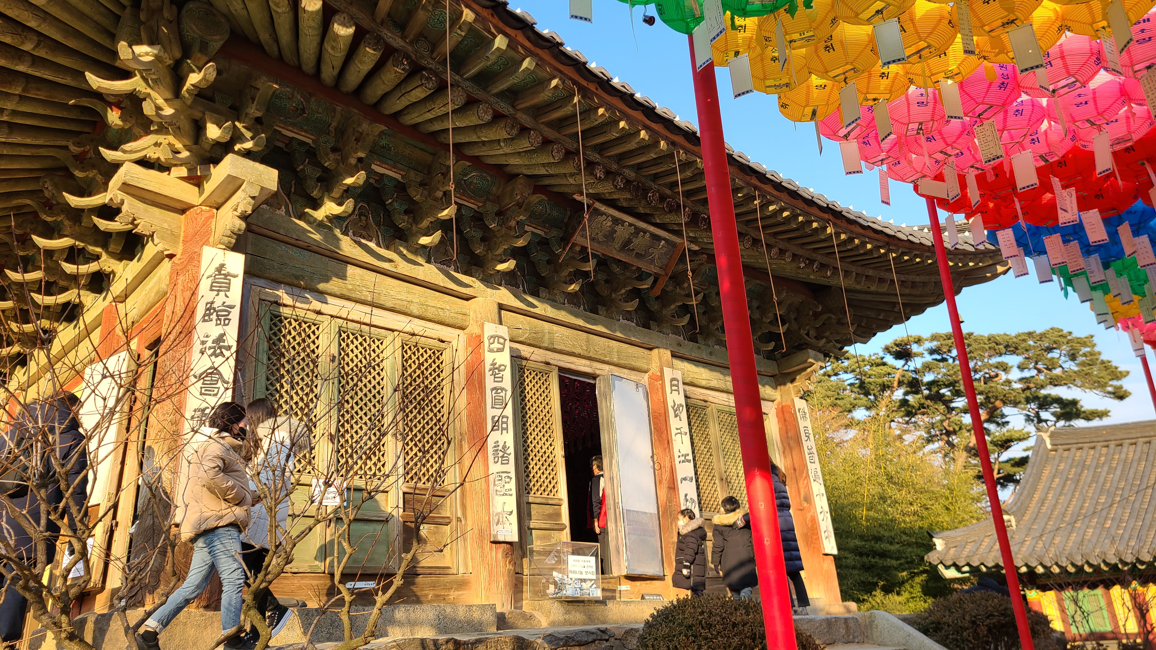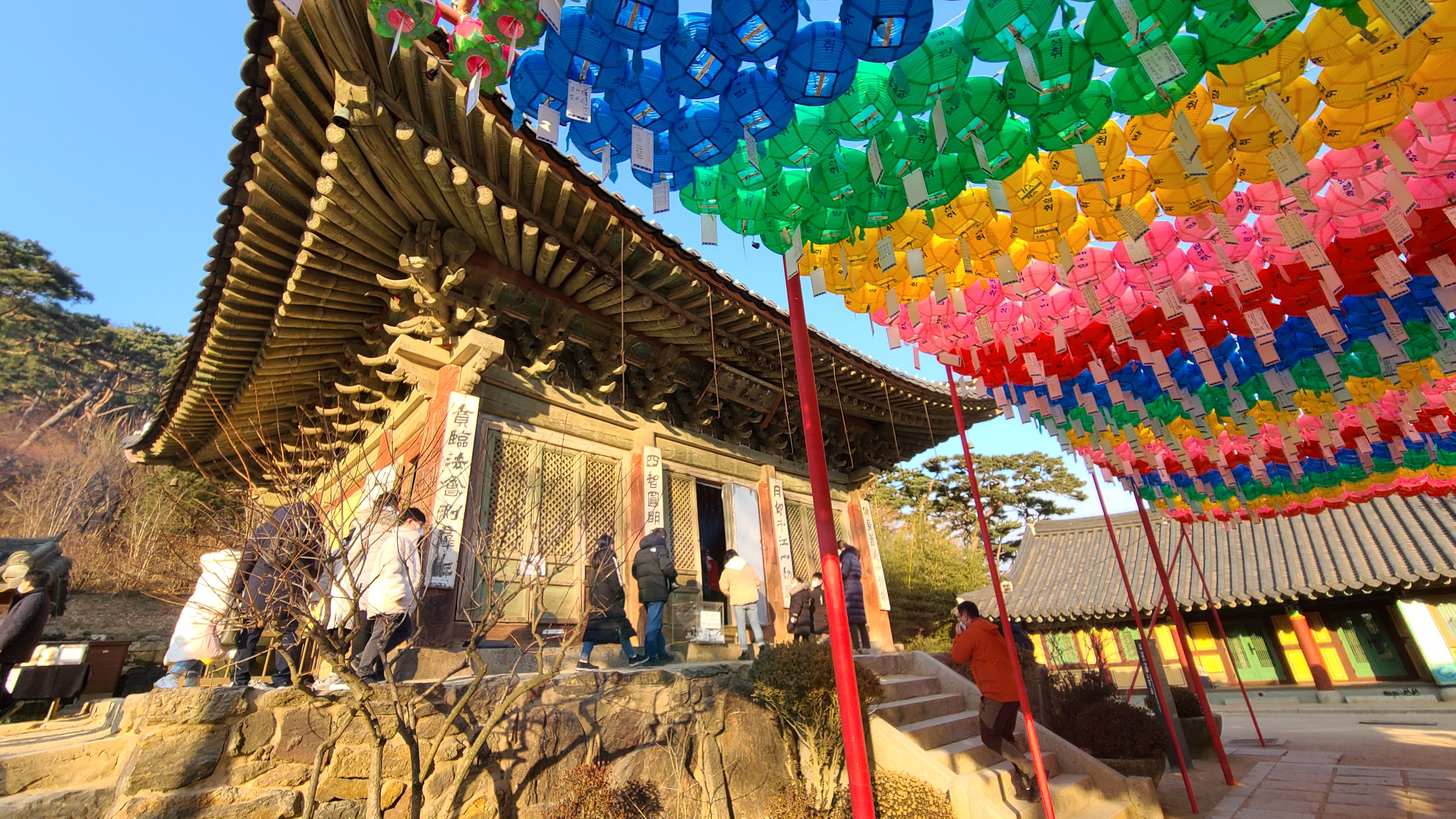 세시간에 걸쳐 산행을 마치고는 드라이브후 전등사를 찾아 법당에서 삼배를 올린다.