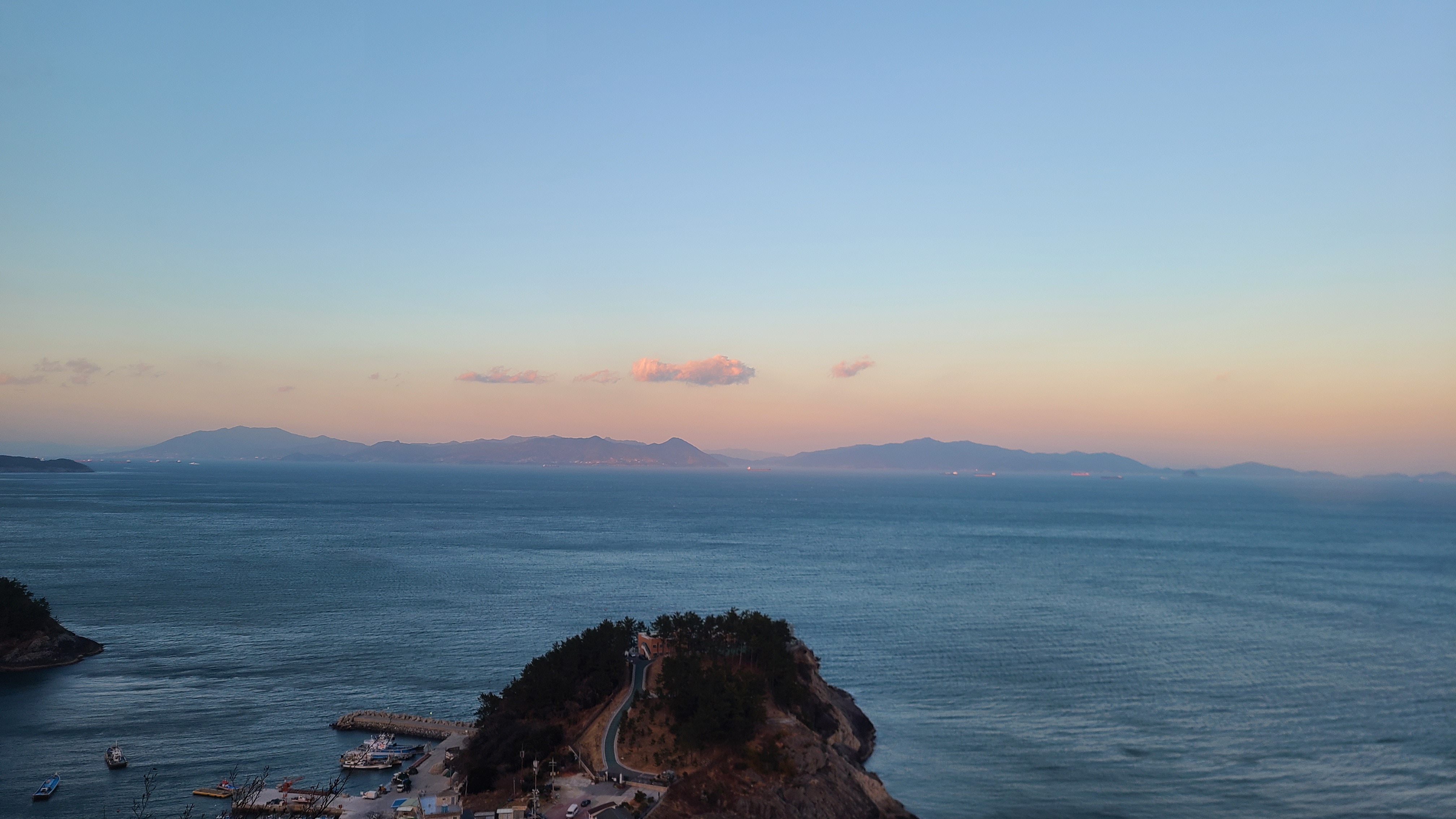 일몰의 경관과함께 붉은 남해바다의 모습이 장관이다.
