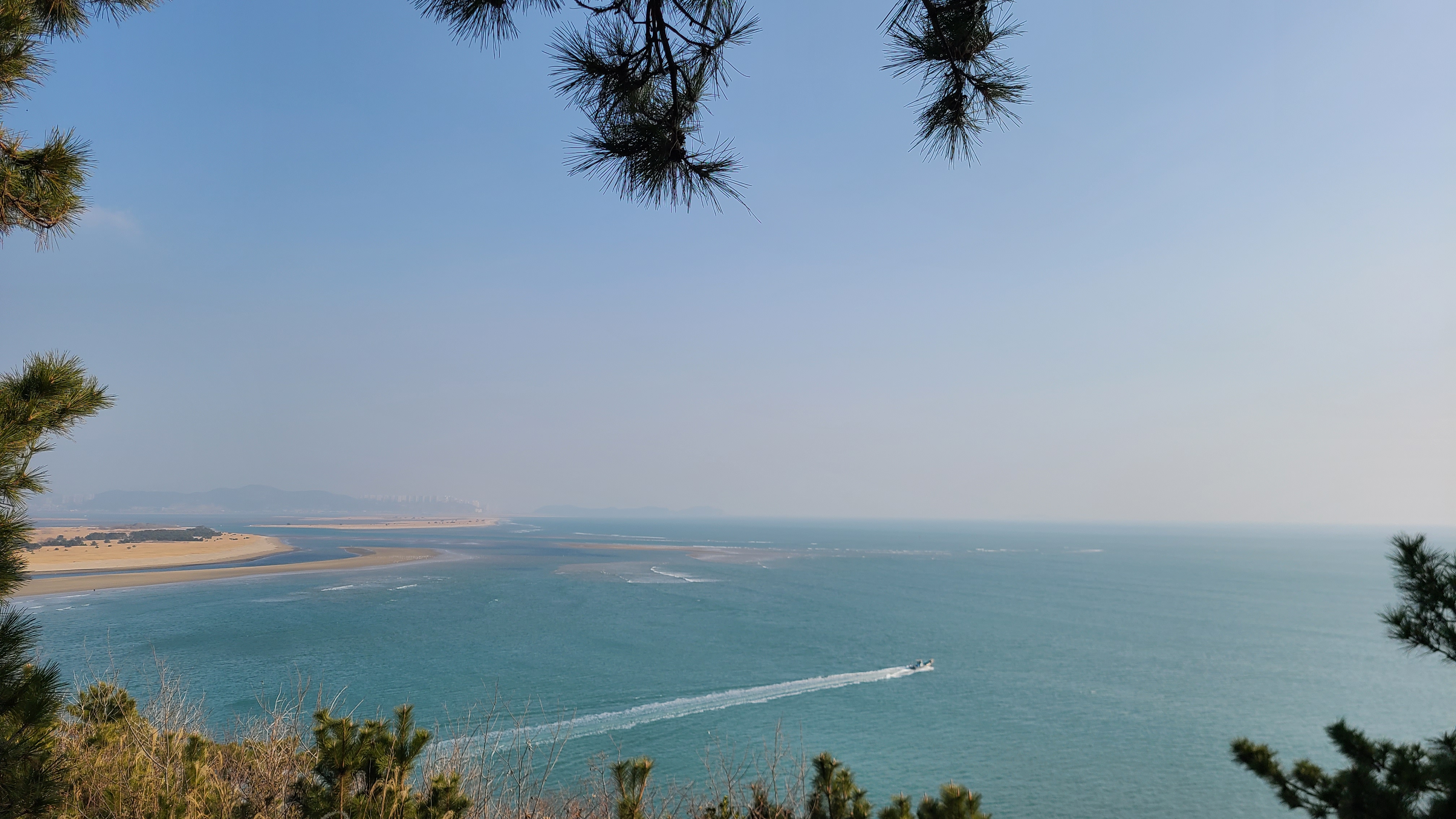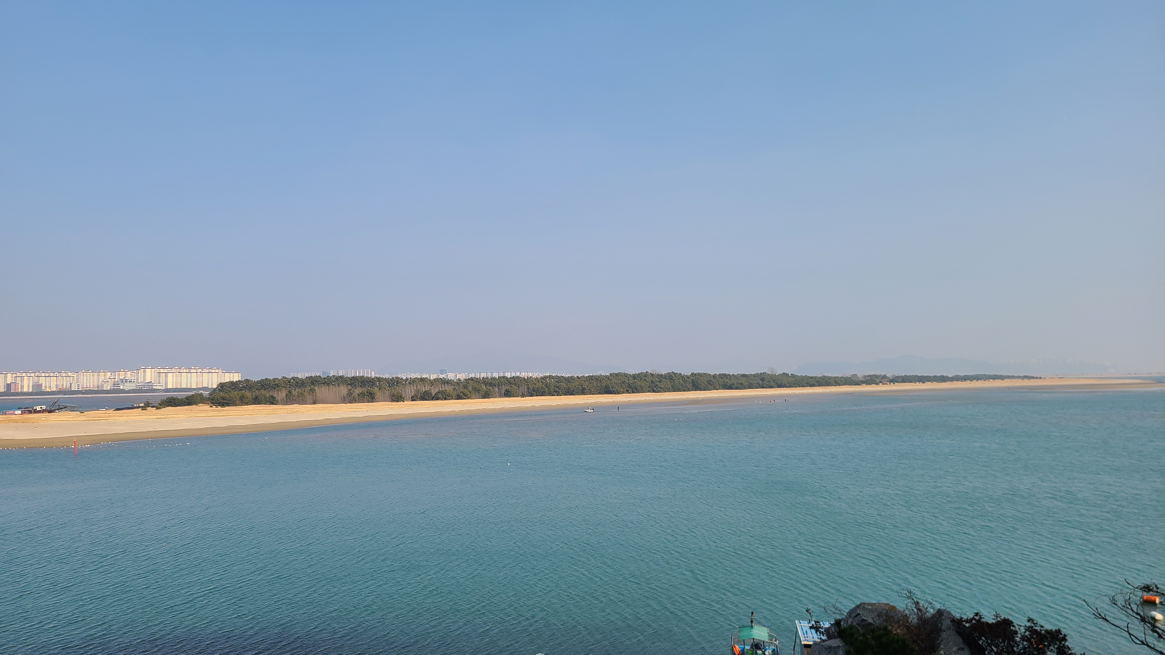 이어지는 갈맷길을 걸어 야산언덕위까지 걸어보니 낙동강하안에 쌓이는 모래로 이루어진 섬이 눈앞에 보인다.